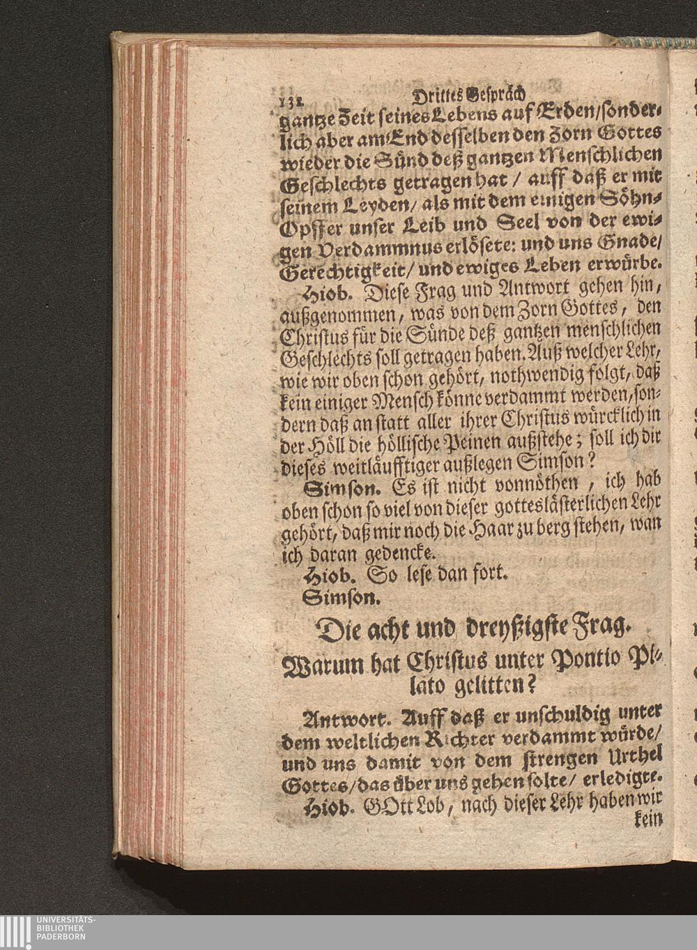Vier verschiedene Zwischen zweyen Reformirten Bürgern Hiob Und Simson Angestellte Discourse Uber den so genanten Reformirten Heidelberger Catechismum, : Jn welchen Alle in demselben enthaltene 129. Fragen abgehandelt, Und was in einer jeglichen insonderheit zu mercken/ Auff das deutlichste erkläret wird / [Georg Kauffmann]