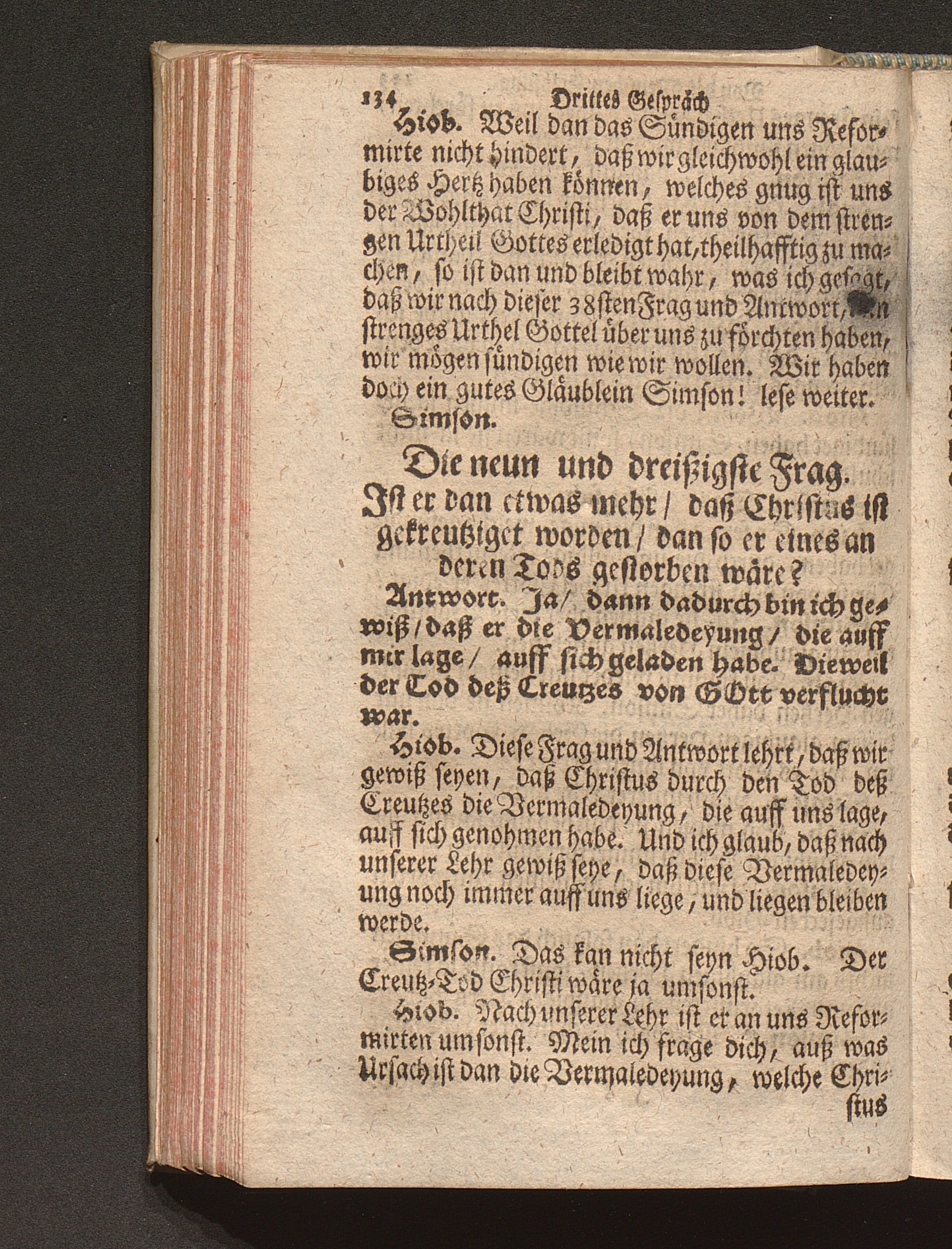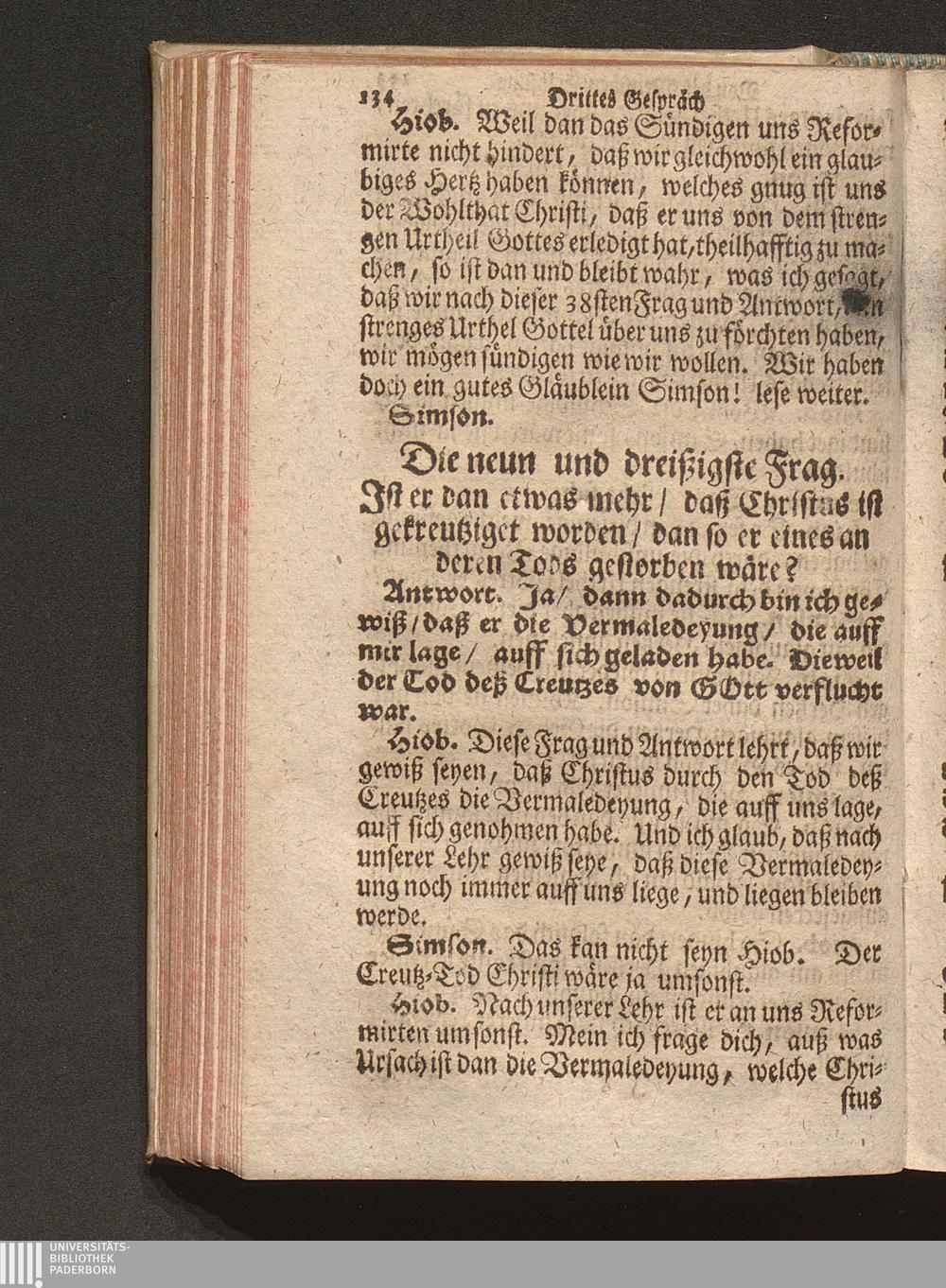 Vier verschiedene Zwischen zweyen Reformirten Bürgern Hiob Und Simson Angestellte Discourse Uber den so genanten Reformirten Heidelberger Catechismum, : Jn welchen Alle in demselben enthaltene 129. Fragen abgehandelt, Und was in einer jeglichen insonderheit zu mercken/ Auff das deutlichste erkläret wird / [Georg Kauffmann]