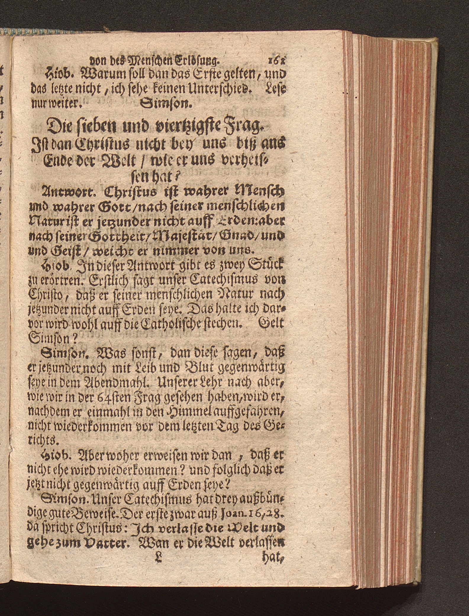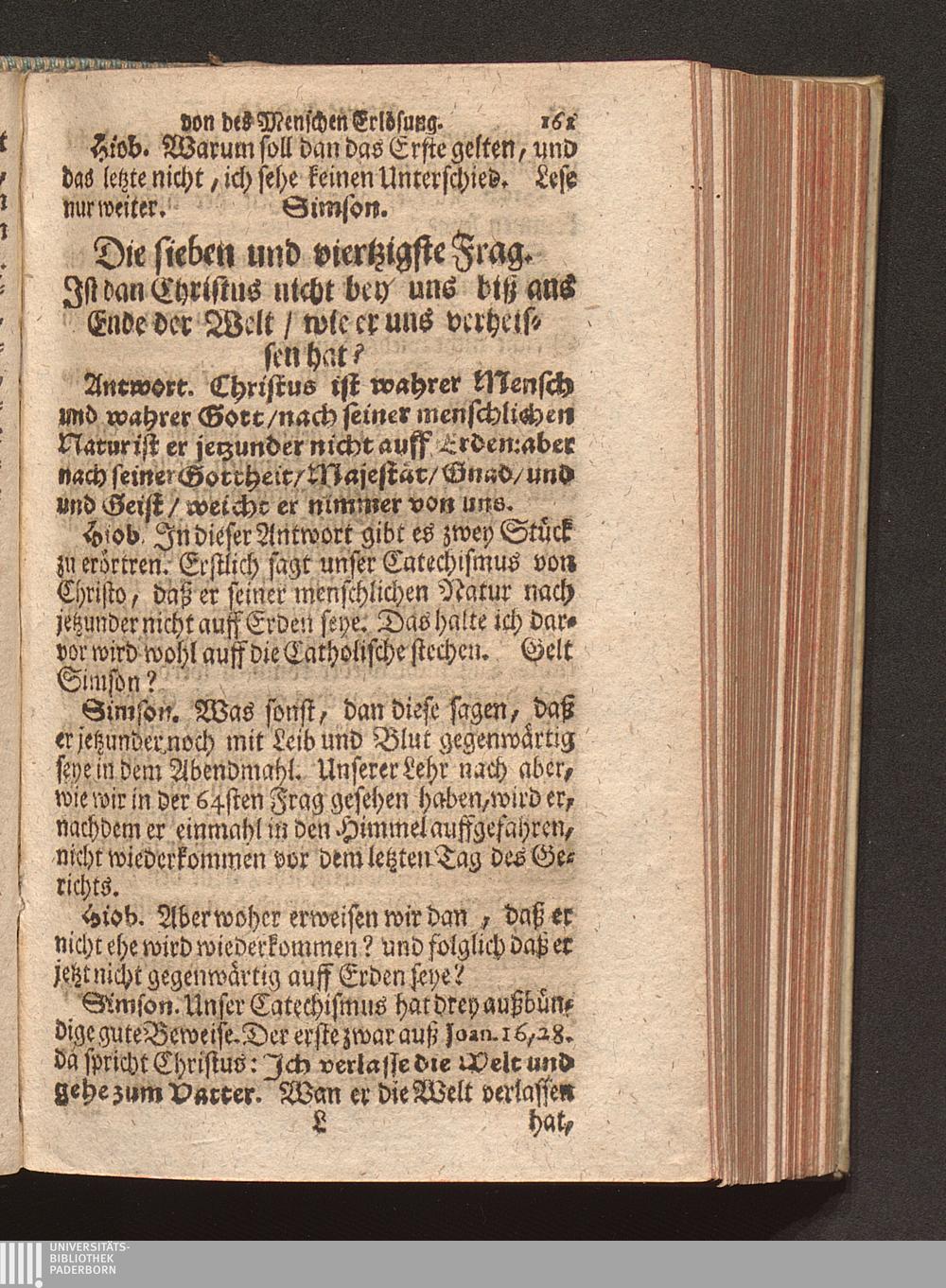 Vier verschiedene Zwischen zweyen Reformirten Bürgern Hiob Und Simson Angestellte Discourse Uber den so genanten Reformirten Heidelberger Catechismum, : Jn welchen Alle in demselben enthaltene 129. Fragen abgehandelt, Und was in einer jeglichen insonderheit zu mercken/ Auff das deutlichste erkläret wird / [Georg Kauffmann]