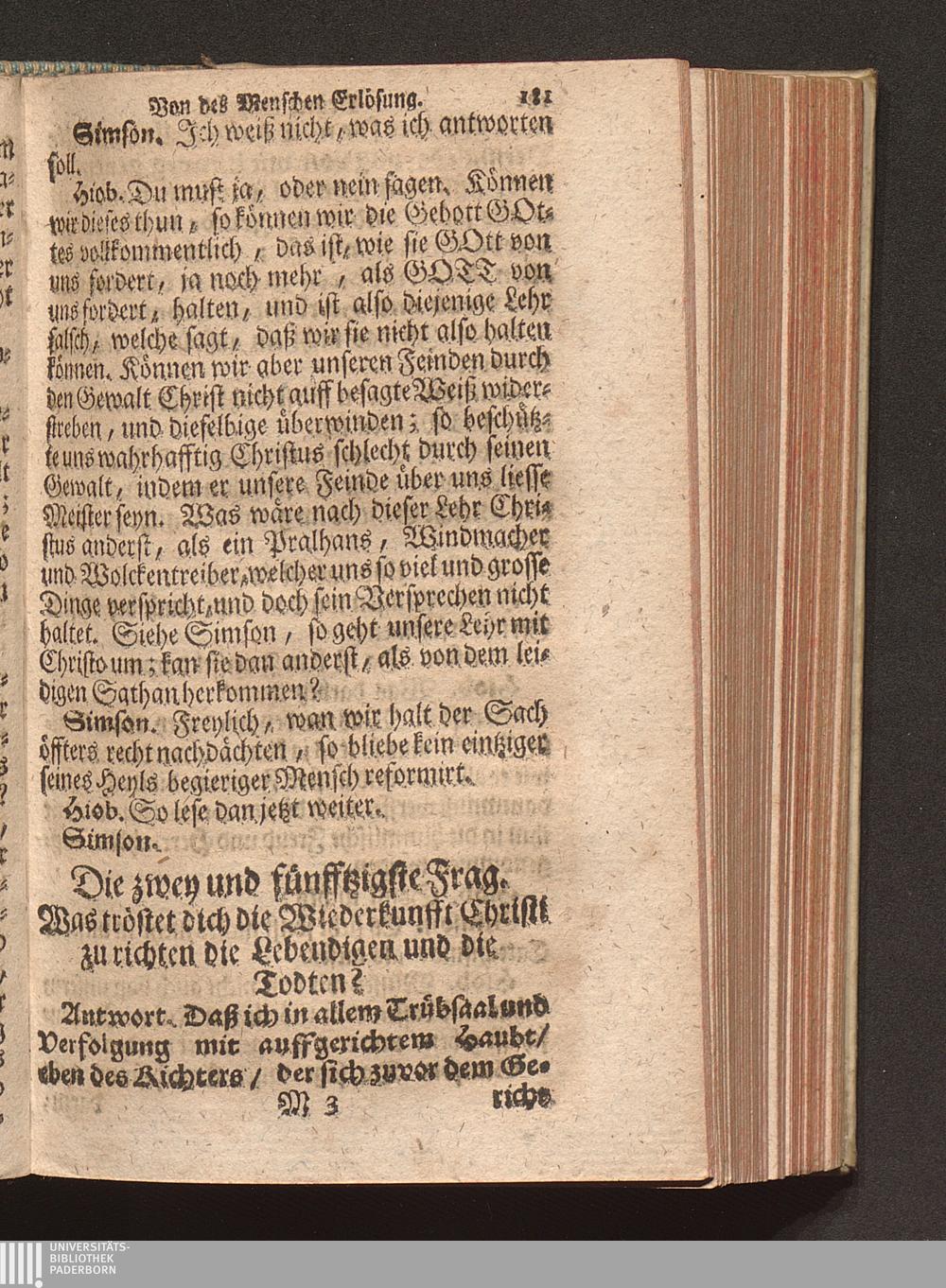 Vier verschiedene Zwischen zweyen Reformirten Bürgern Hiob Und Simson Angestellte Discourse Uber den so genanten Reformirten Heidelberger Catechismum, : Jn welchen Alle in demselben enthaltene 129. Fragen abgehandelt, Und was in einer jeglichen insonderheit zu mercken/ Auff das deutlichste erkläret wird / [Georg Kauffmann]