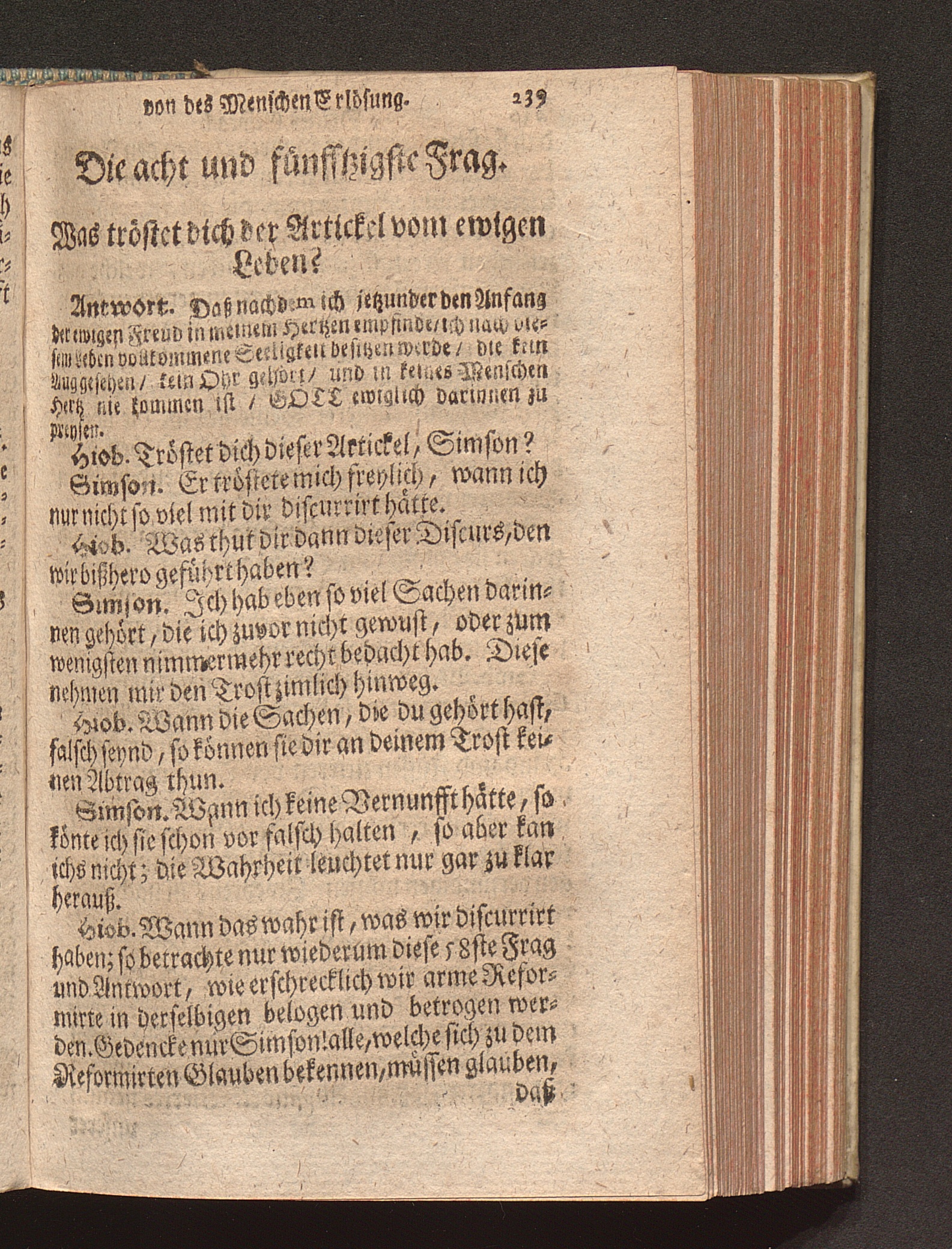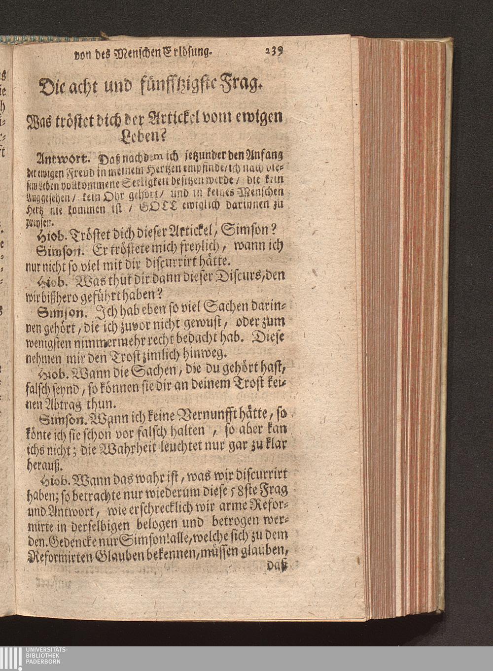 Vier verschiedene Zwischen zweyen Reformirten Bürgern Hiob Und Simson Angestellte Discourse Uber den so genanten Reformirten Heidelberger Catechismum, : Jn welchen Alle in demselben enthaltene 129. Fragen abgehandelt, Und was in einer jeglichen insonderheit zu mercken/ Auff das deutlichste erkläret wird / [Georg Kauffmann]