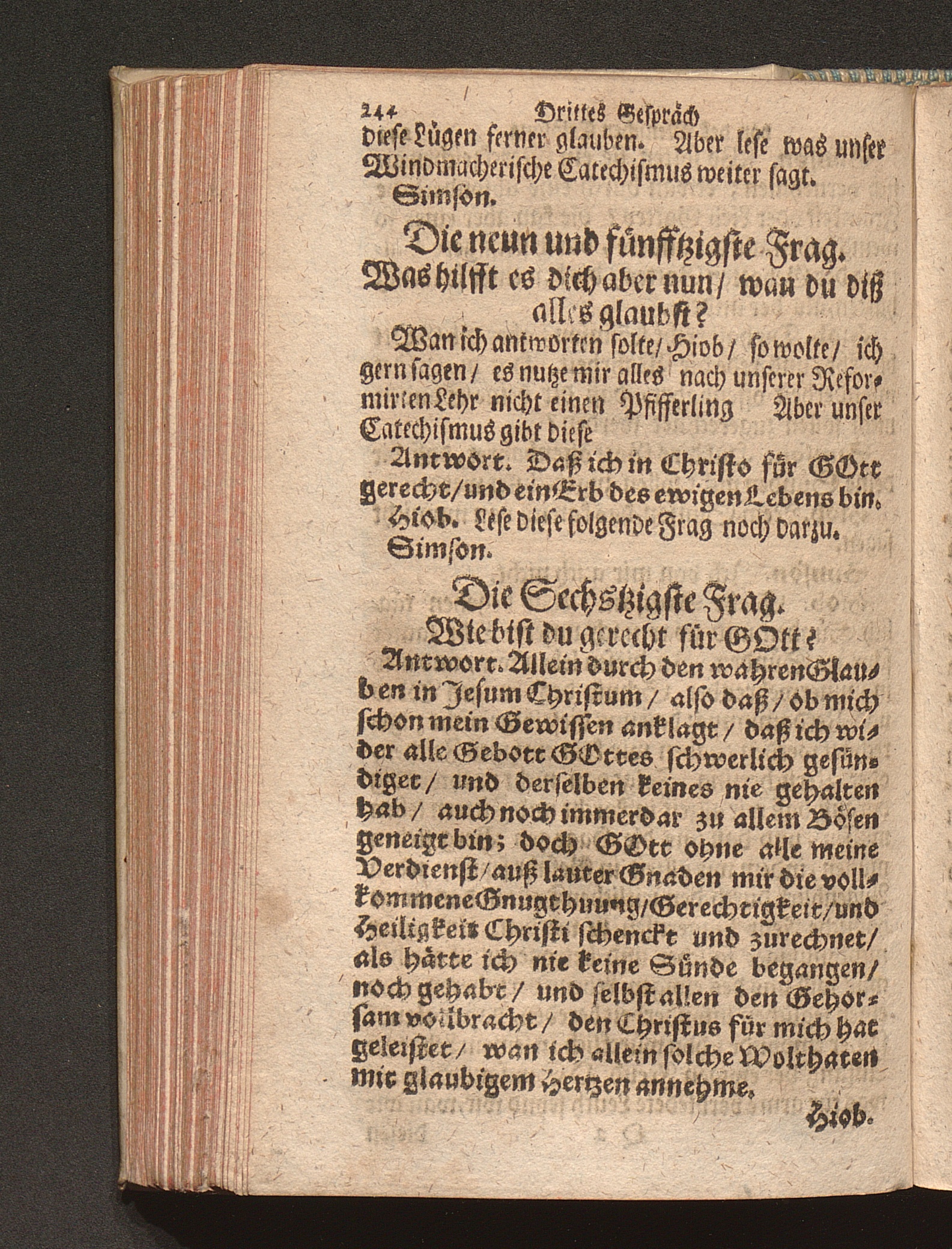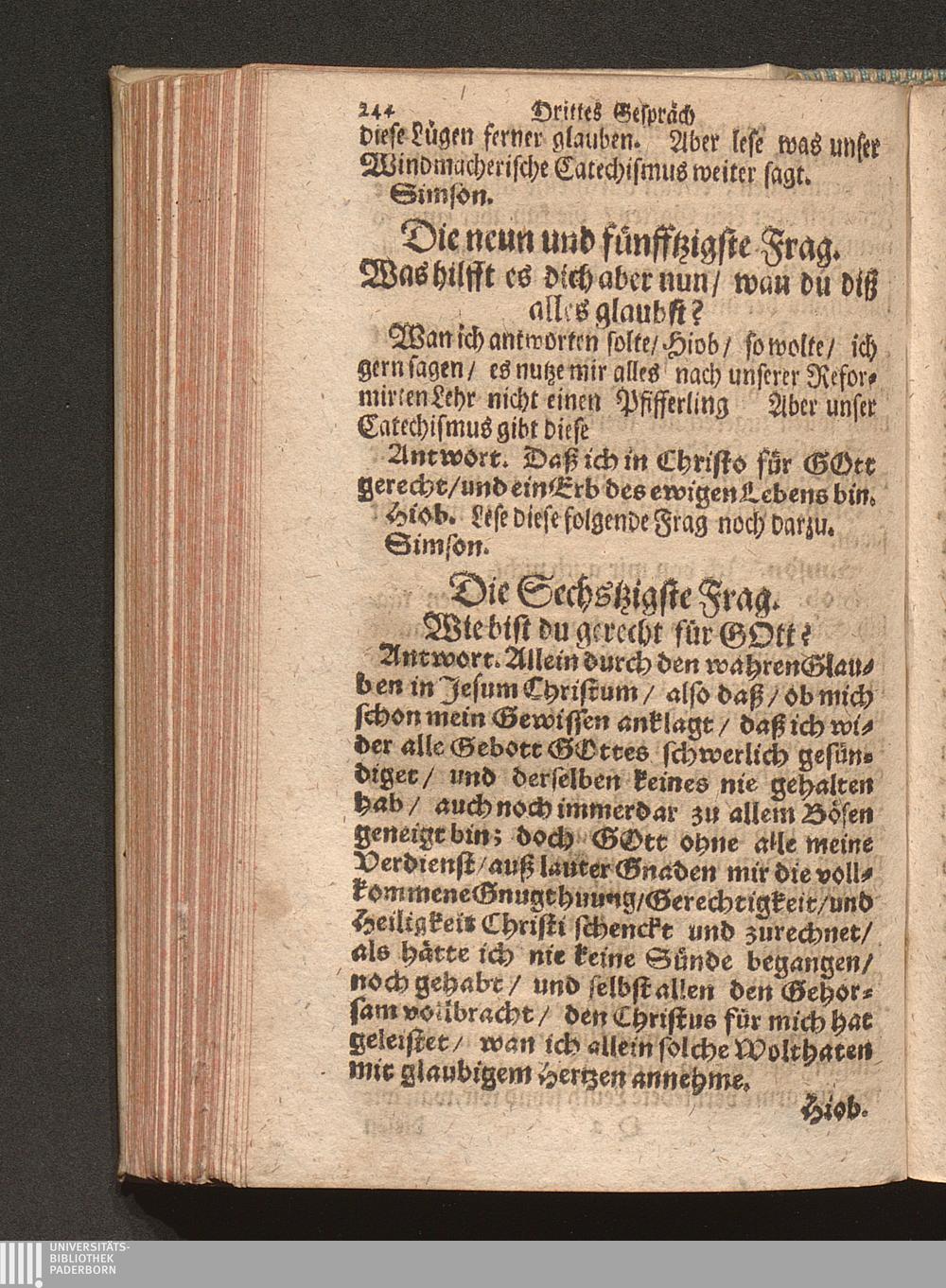 Vier verschiedene Zwischen zweyen Reformirten Bürgern Hiob Und Simson Angestellte Discourse Uber den so genanten Reformirten Heidelberger Catechismum, : Jn welchen Alle in demselben enthaltene 129. Fragen abgehandelt, Und was in einer jeglichen insonderheit zu mercken/ Auff das deutlichste erkläret wird / [Georg Kauffmann]