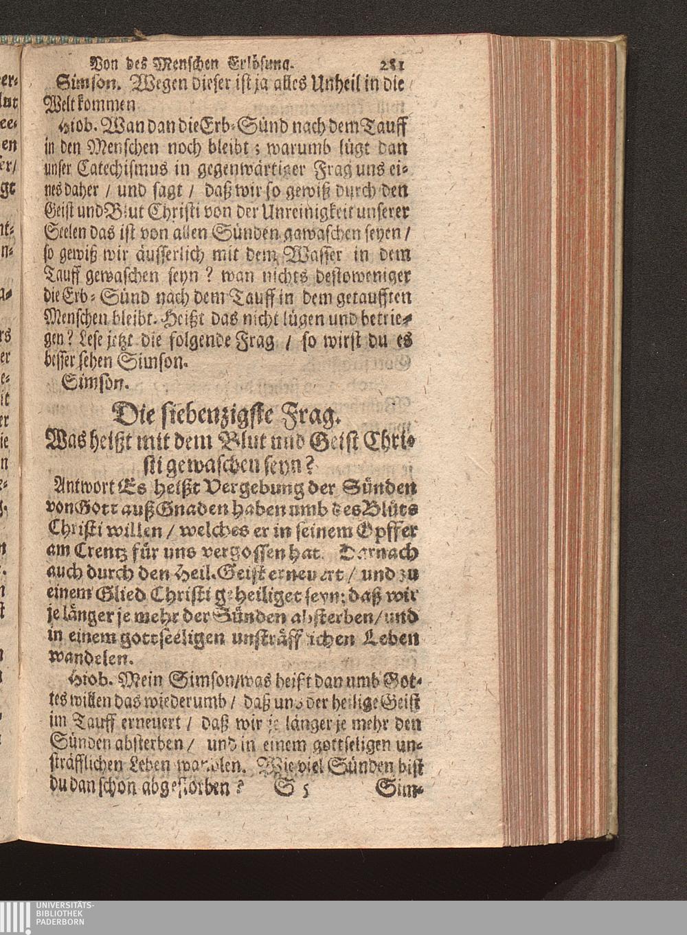 Vier verschiedene Zwischen zweyen Reformirten Bürgern Hiob Und Simson Angestellte Discourse Uber den so genanten Reformirten Heidelberger Catechismum, : Jn welchen Alle in demselben enthaltene 129. Fragen abgehandelt, Und was in einer jeglichen insonderheit zu mercken/ Auff das deutlichste erkläret wird / [Georg Kauffmann]