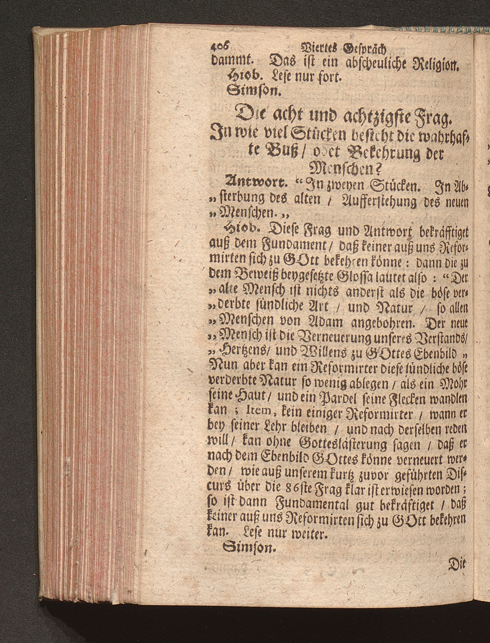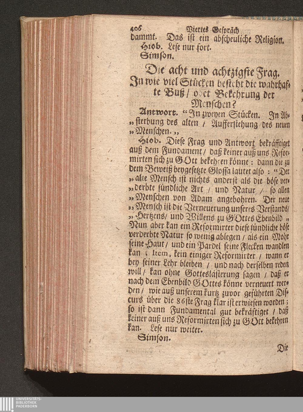 Vier verschiedene Zwischen zweyen Reformirten Bürgern Hiob Und Simson Angestellte Discourse Uber den so genanten Reformirten Heidelberger Catechismum, : Jn welchen Alle in demselben enthaltene 129. Fragen abgehandelt, Und was in einer jeglichen insonderheit zu mercken/ Auff das deutlichste erkläret wird / [Georg Kauffmann]