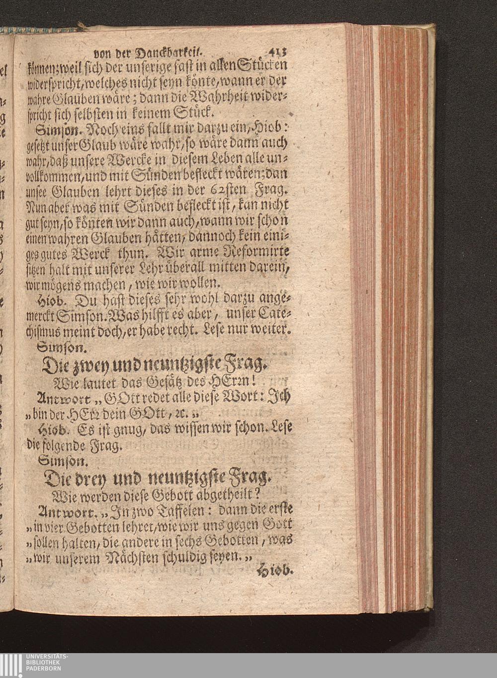 Vier verschiedene Zwischen zweyen Reformirten Bürgern Hiob Und Simson Angestellte Discourse Uber den so genanten Reformirten Heidelberger Catechismum, : Jn welchen Alle in demselben enthaltene 129. Fragen abgehandelt, Und was in einer jeglichen insonderheit zu mercken/ Auff das deutlichste erkläret wird / [Georg Kauffmann]