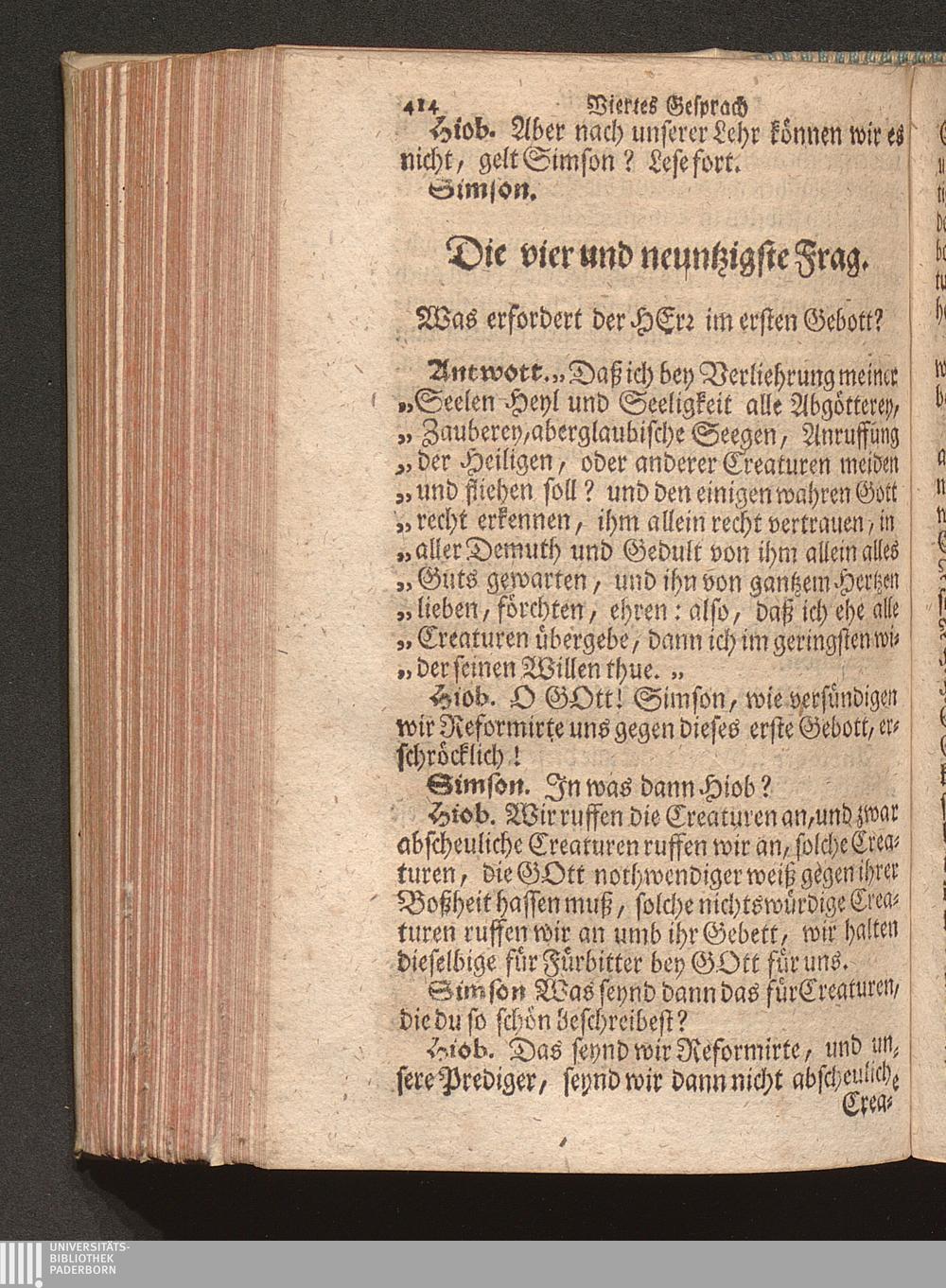 Vier verschiedene Zwischen zweyen Reformirten Bürgern Hiob Und Simson Angestellte Discourse Uber den so genanten Reformirten Heidelberger Catechismum, : Jn welchen Alle in demselben enthaltene 129. Fragen abgehandelt, Und was in einer jeglichen insonderheit zu mercken/ Auff das deutlichste erkläret wird / [Georg Kauffmann]