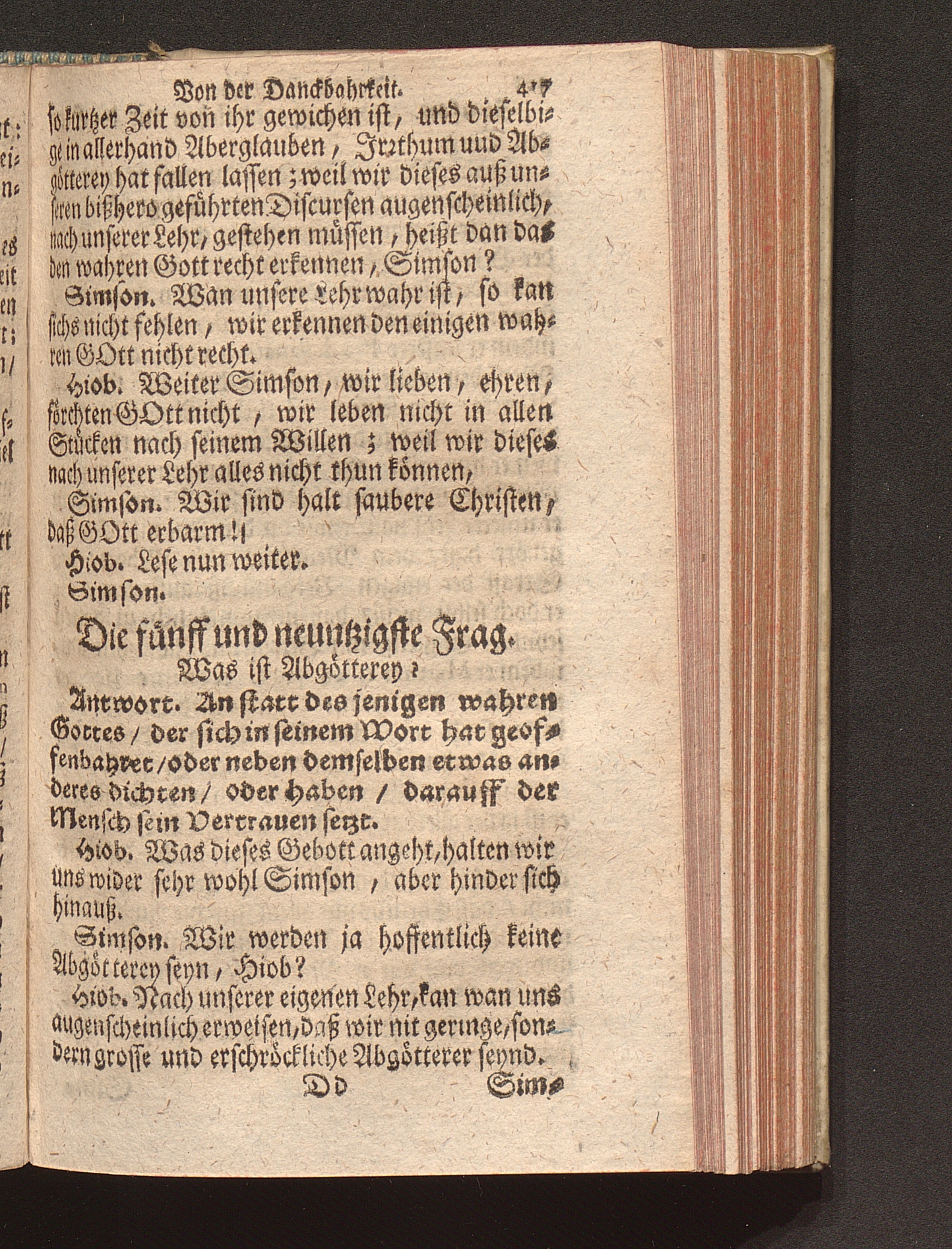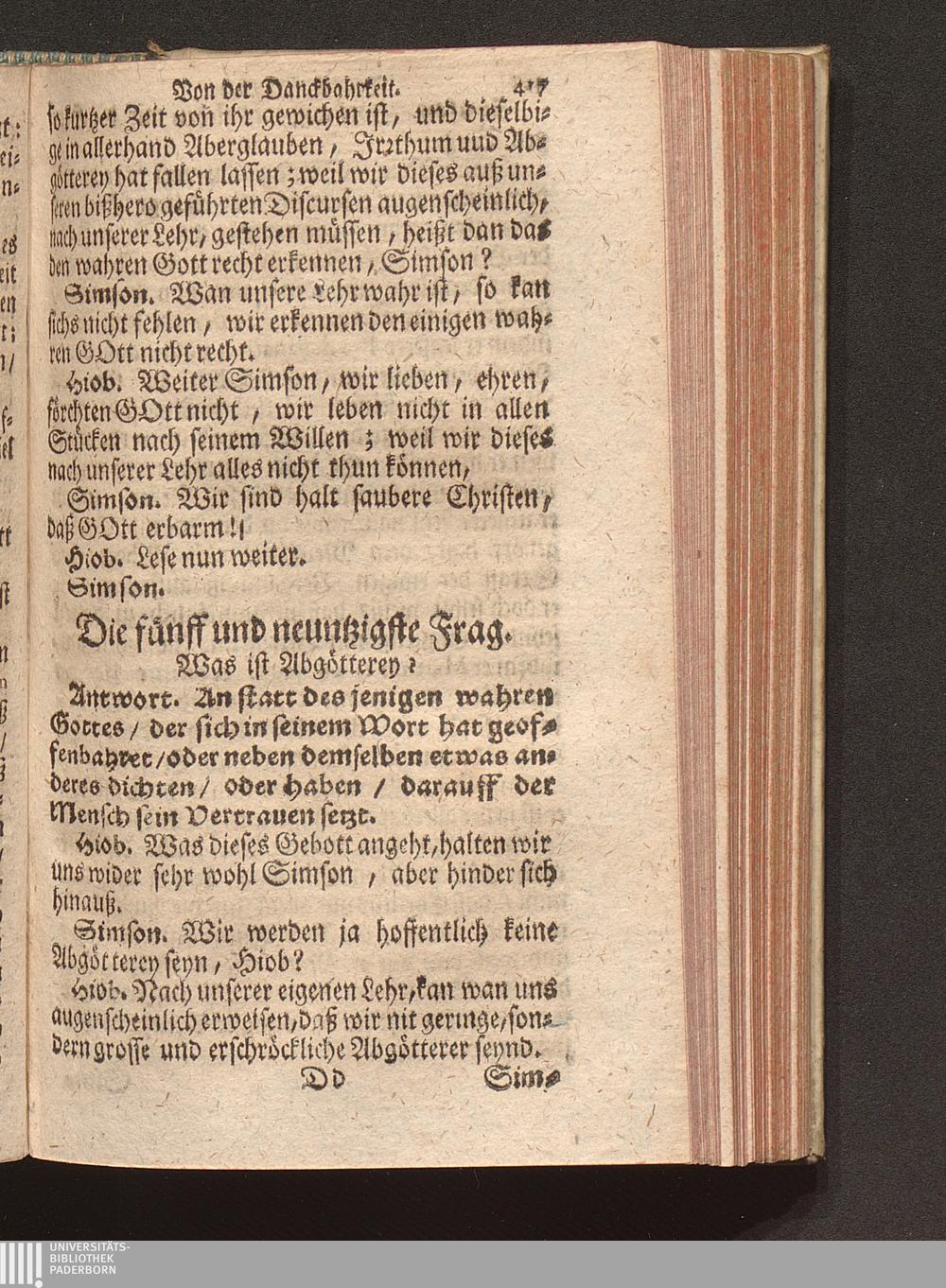Vier verschiedene Zwischen zweyen Reformirten Bürgern Hiob Und Simson Angestellte Discourse Uber den so genanten Reformirten Heidelberger Catechismum, : Jn welchen Alle in demselben enthaltene 129. Fragen abgehandelt, Und was in einer jeglichen insonderheit zu mercken/ Auff das deutlichste erkläret wird / [Georg Kauffmann]