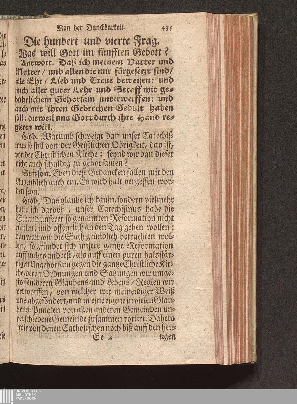 Vier verschiedene Zwischen zweyen Reformirten Bürgern Hiob Und Simson Angestellte Discourse Uber den so genanten Reformirten Heidelberger Catechismum, : Jn welchen Alle in demselben enthaltene 129. Fragen abgehandelt, Und was in einer jeglichen insonderheit zu mercken/ Auff das deutlichste erkläret wird / [Georg Kauffmann]