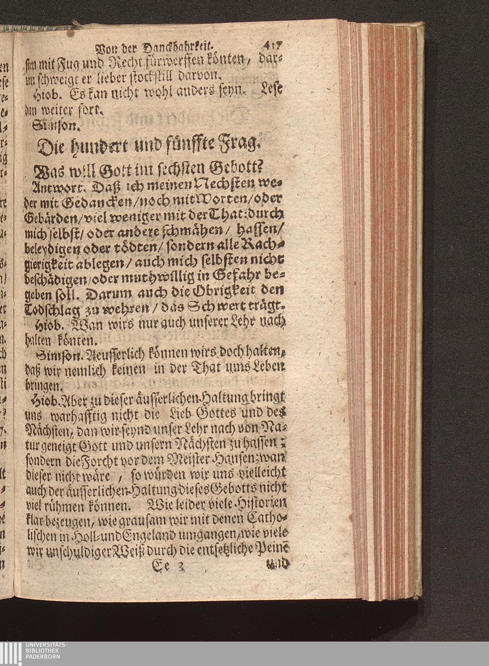Vier verschiedene Zwischen zweyen Reformirten Bürgern Hiob Und Simson Angestellte Discourse Uber den so genanten Reformirten Heidelberger Catechismum, : Jn welchen Alle in demselben enthaltene 129. Fragen abgehandelt, Und was in einer jeglichen insonderheit zu mercken/ Auff das deutlichste erkläret wird / [Georg Kauffmann]