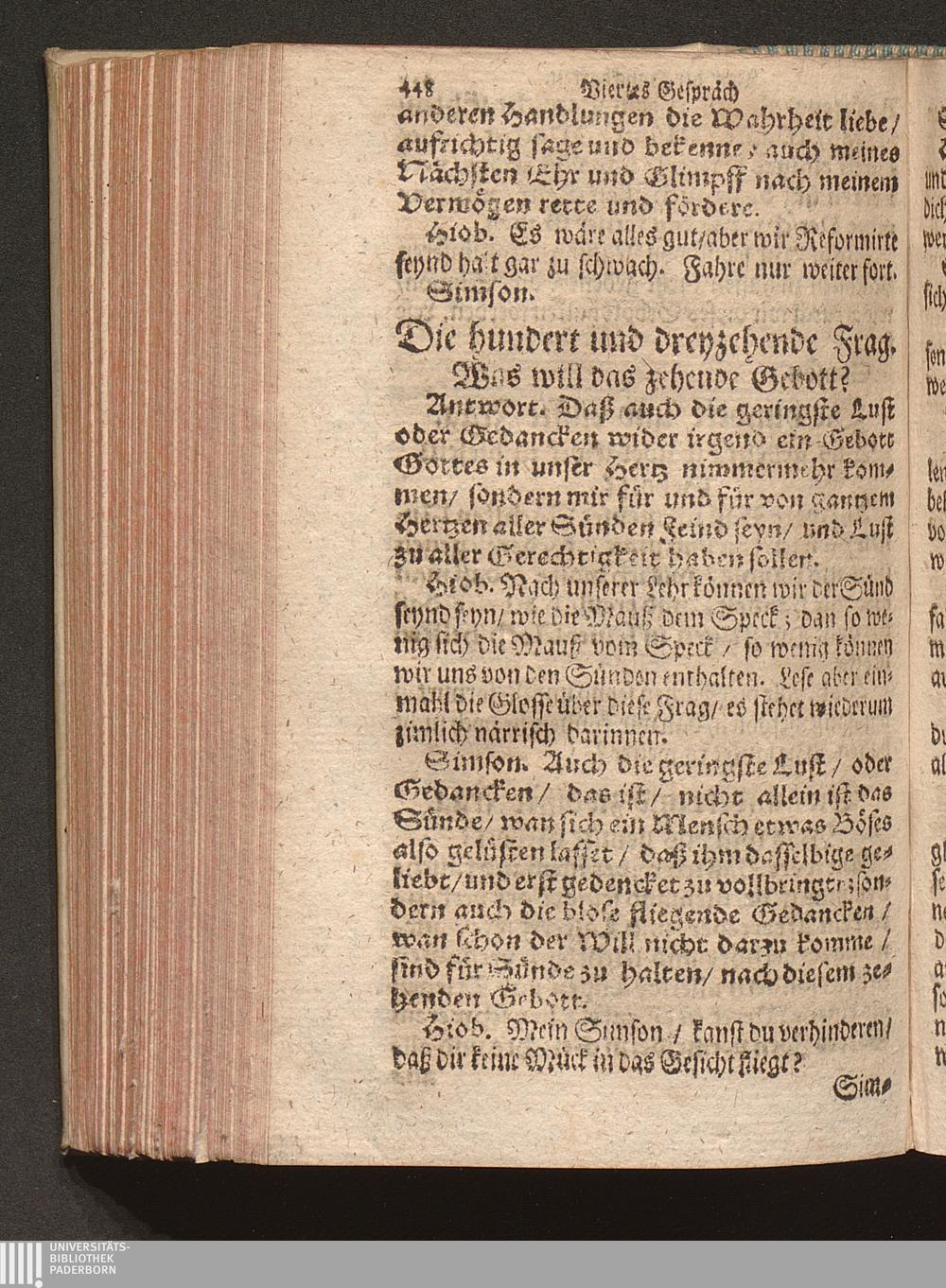 Vier verschiedene Zwischen zweyen Reformirten Bürgern Hiob Und Simson Angestellte Discourse Uber den so genanten Reformirten Heidelberger Catechismum, : Jn welchen Alle in demselben enthaltene 129. Fragen abgehandelt, Und was in einer jeglichen insonderheit zu mercken/ Auff das deutlichste erkläret wird / [Georg Kauffmann]