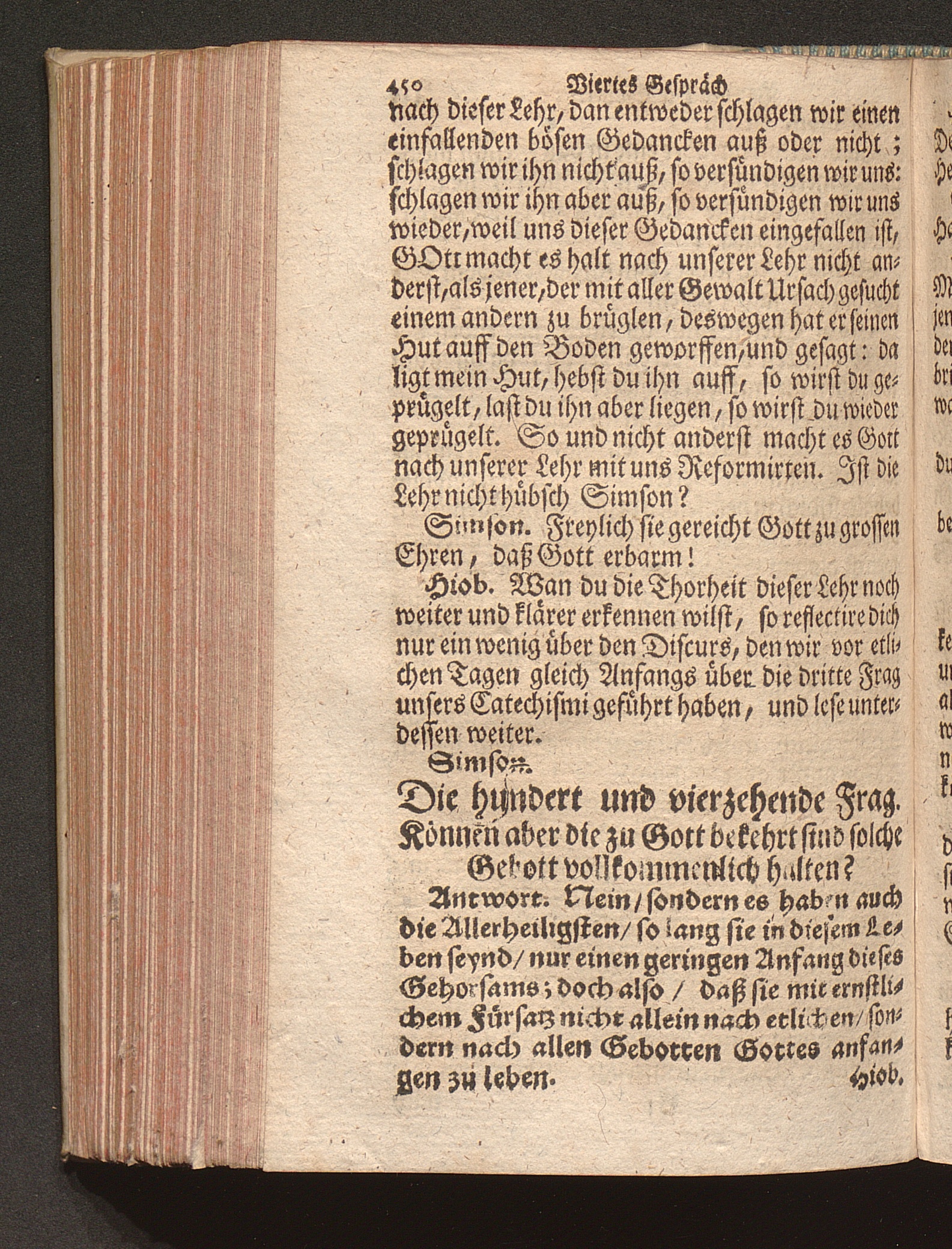 Vier verschiedene Zwischen zweyen Reformirten Bürgern Hiob Und Simson Angestellte Discourse Uber den so genanten Reformirten Heidelberger Catechismum, : Jn welchen Alle in demselben enthaltene 129. Fragen abgehandelt, Und was in einer jeglichen insonderheit zu mercken/ Auff das deutlichste erkläret wird / [Georg Kauffmann]
