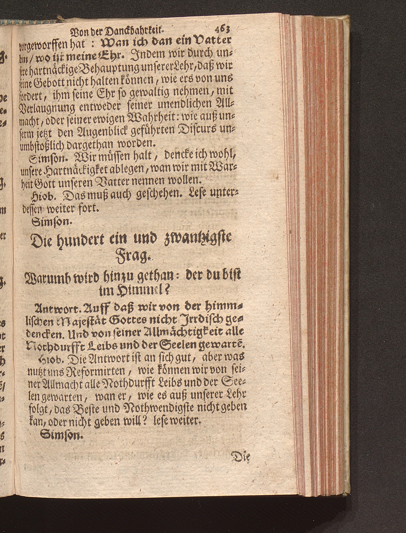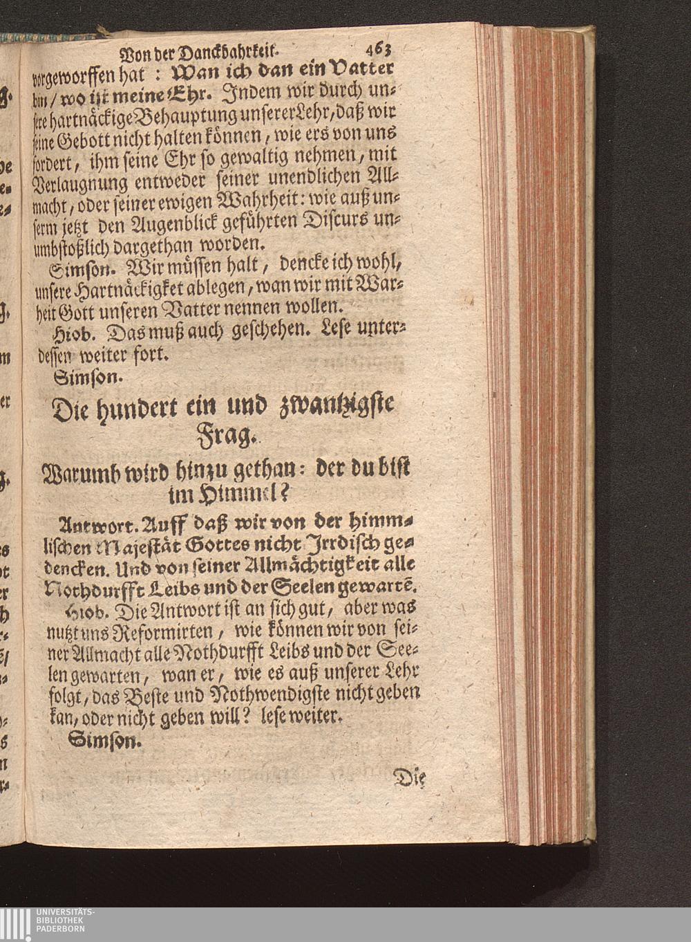 Vier verschiedene Zwischen zweyen Reformirten Bürgern Hiob Und Simson Angestellte Discourse Uber den so genanten Reformirten Heidelberger Catechismum, : Jn welchen Alle in demselben enthaltene 129. Fragen abgehandelt, Und was in einer jeglichen insonderheit zu mercken/ Auff das deutlichste erkläret wird / [Georg Kauffmann]