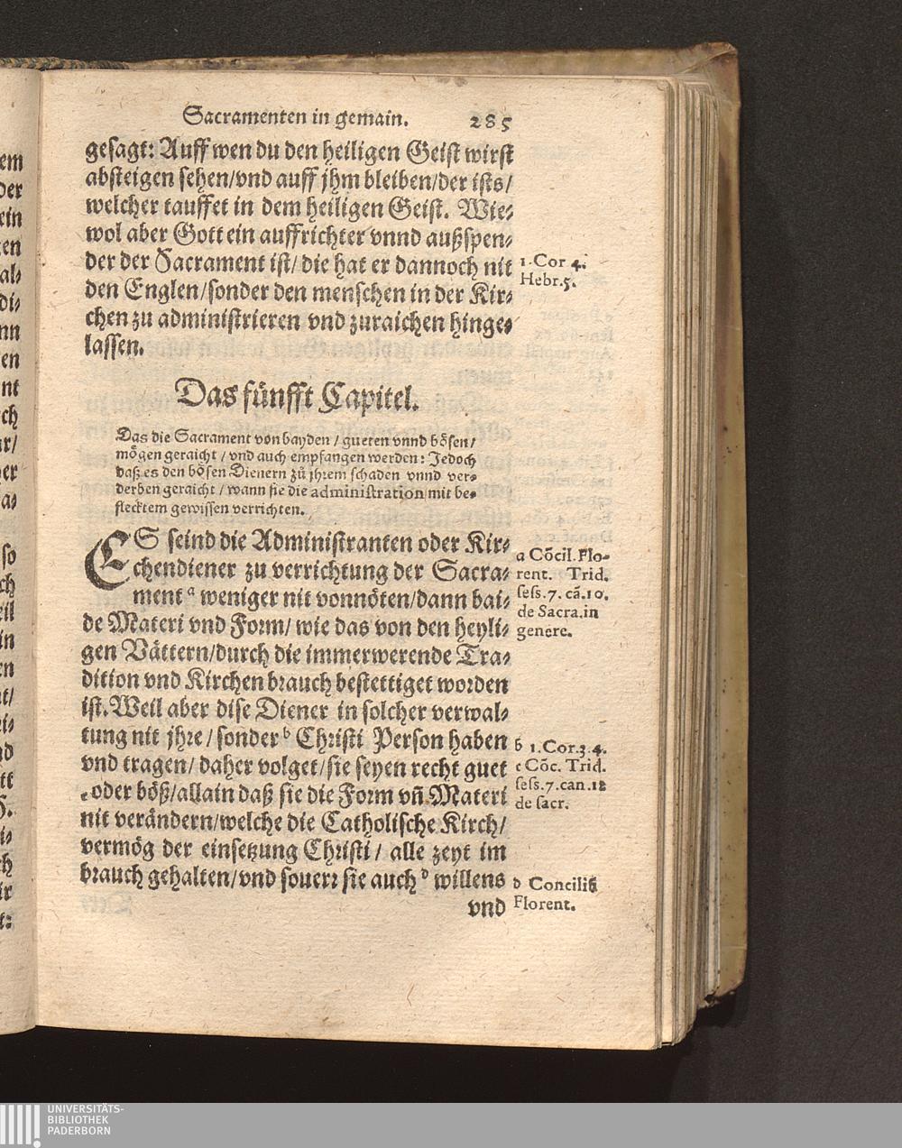 Das fünfft Capitel. Das die Sacrament von bayden/ gueten vnnd bösen/ mögen geraicht/[...]