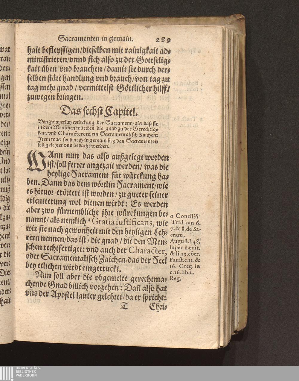 Das sechst Capitel. Von zwayerlay würckung der Sacrament/ als daß sie in dem Menschen[...]