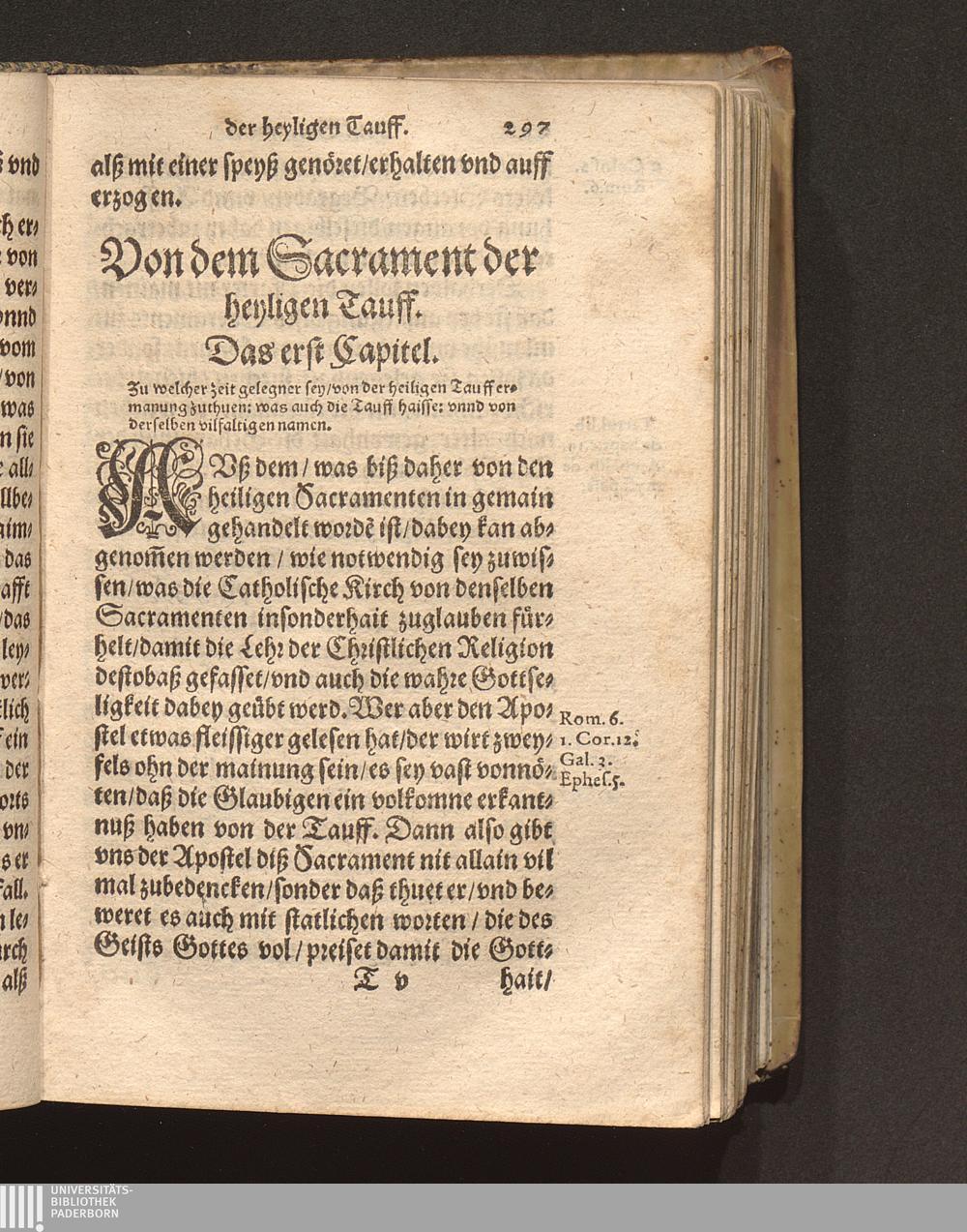 Das erst Capitel. Zu welcher Zeit gelegner sey/ von der heiligen Tauffermanung zuthuen:[...]