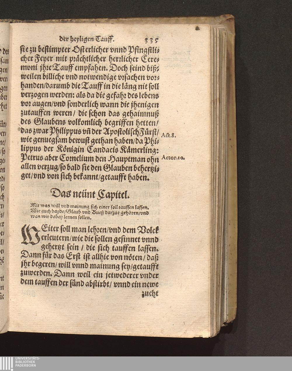 Das neünt Capitel. Nit was will vnd mainung sich einer soll tauffen lassen. Wie auch[...]