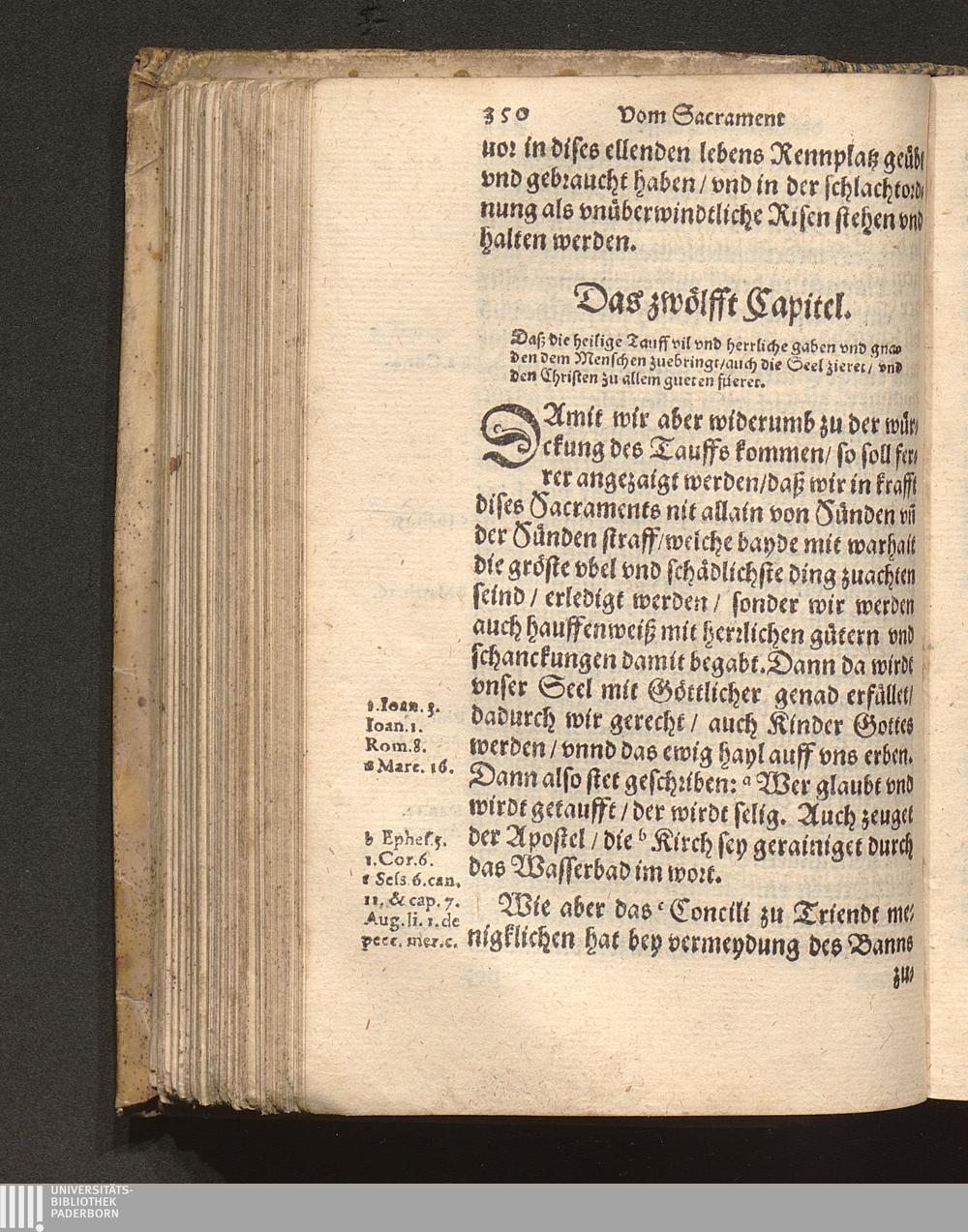 Das zwölfft Capitel. Daß die heilige Tauff vil vnd herrliche gaben vnd gnaden dem[...]