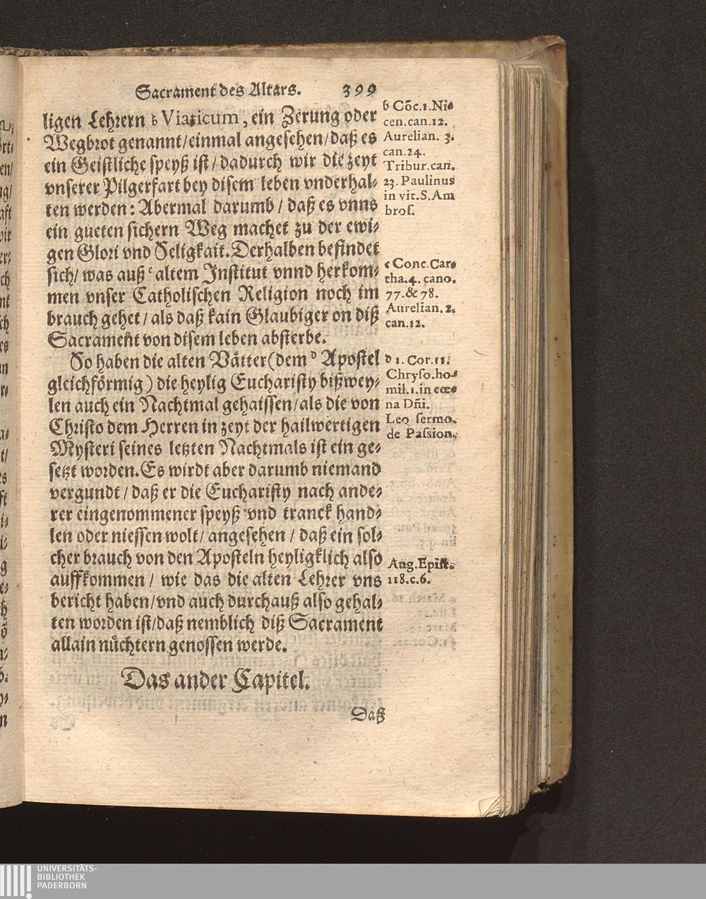 Das ander Capitel. Daß vnder den siben Sacramenten auch die Eucharistia eines sey[...]