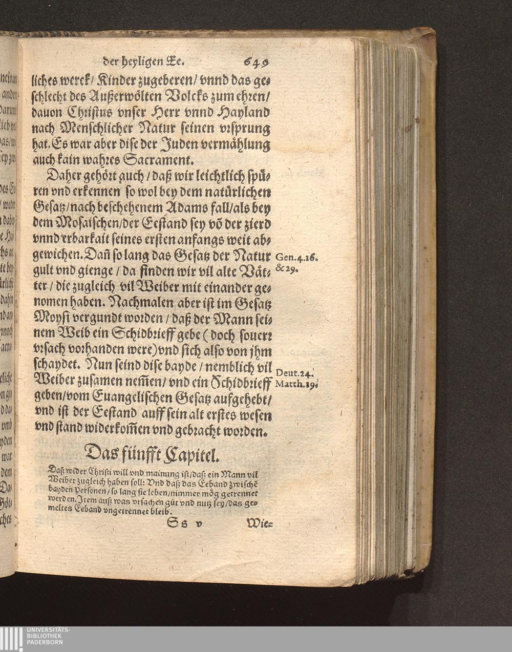 Das fünfft Capitel. Daß wider Christi will vnd mainung ist/ daß ein Mann vil Weiber[...]