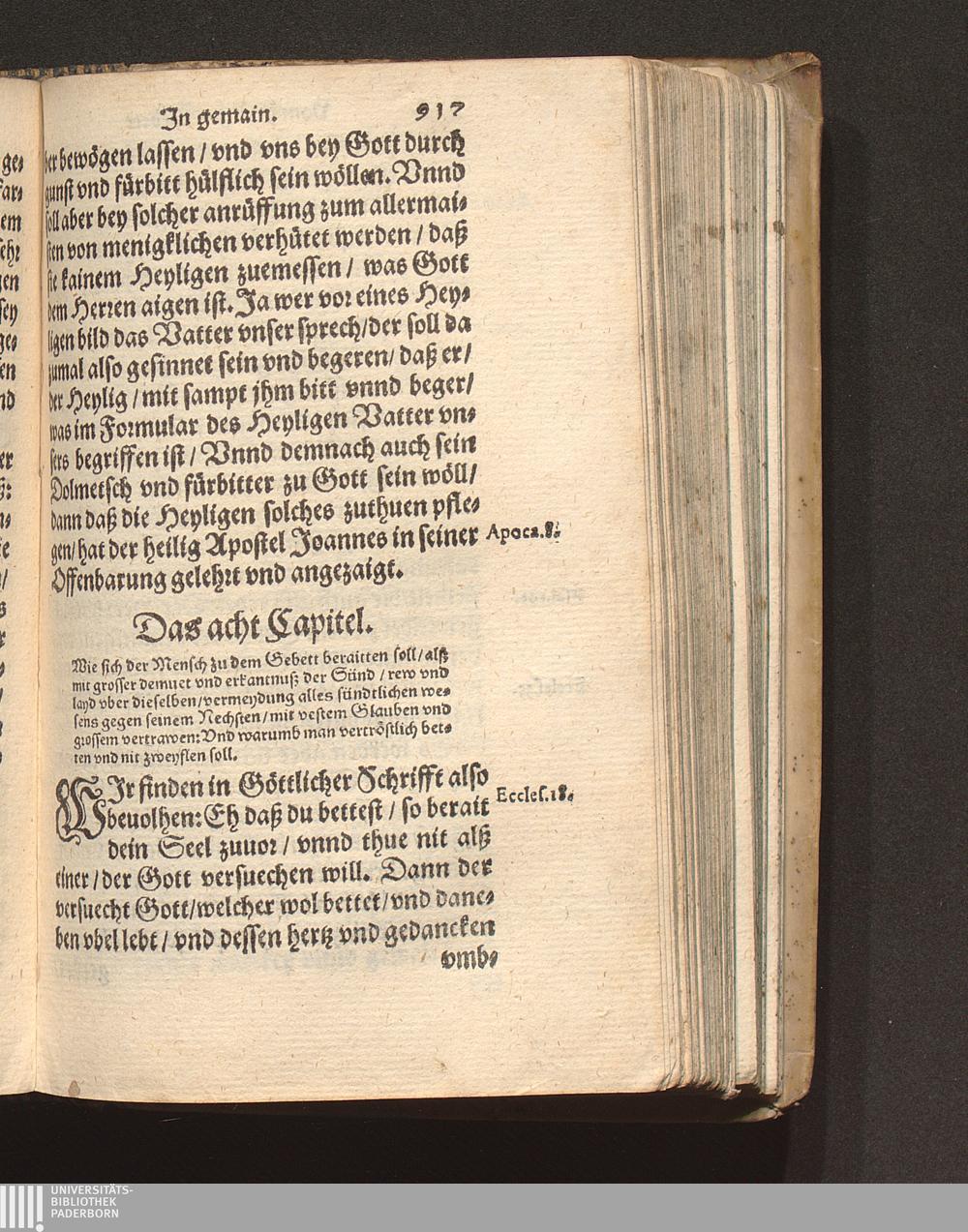 Das acht Capitel. Wie sich der Mensch zu dem Gebett beraitten soll/ alß mit grosser[...]