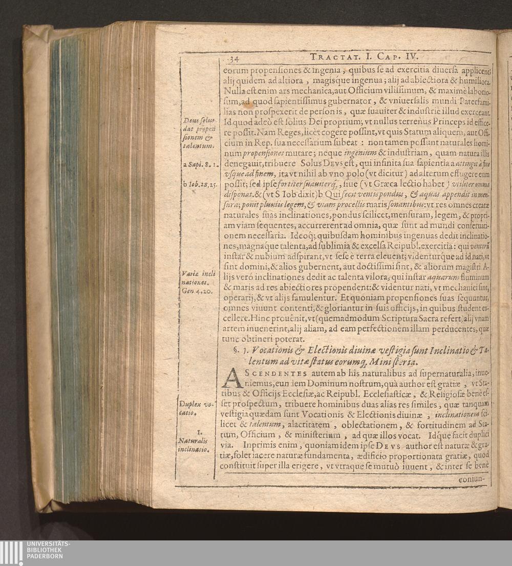 Cap. IV. Dei Prouidentia circa varias inclinationes, talenta, & vocationem ad varios[...]