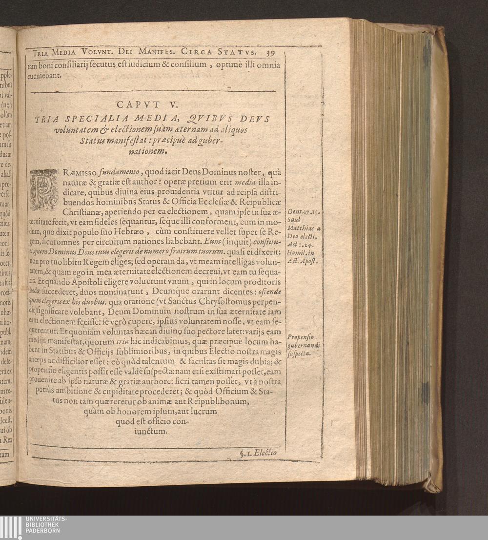 Cap. V. Tria specialia media, quibus Deus voluntatem suam & electionem æternam ad[...]