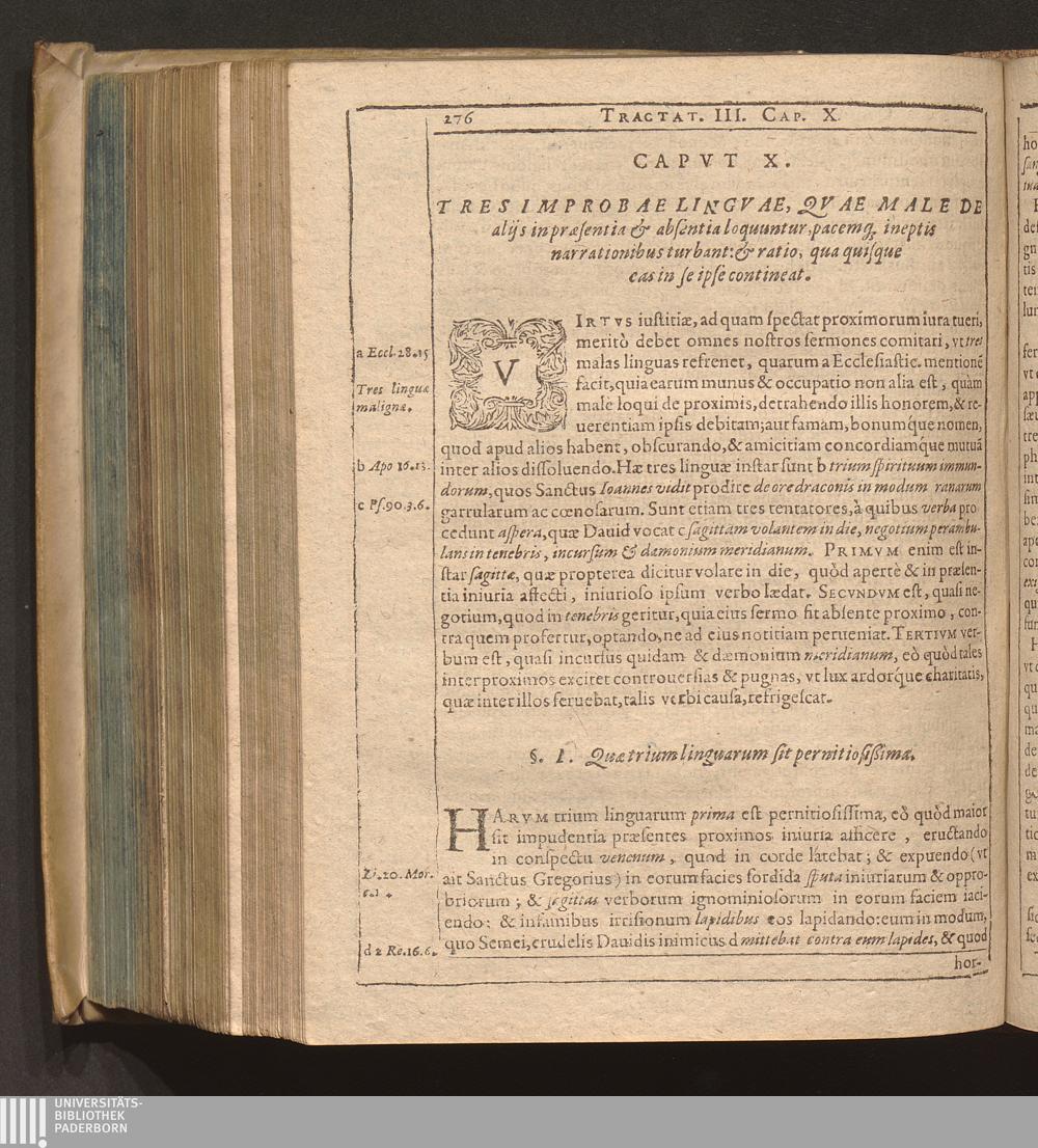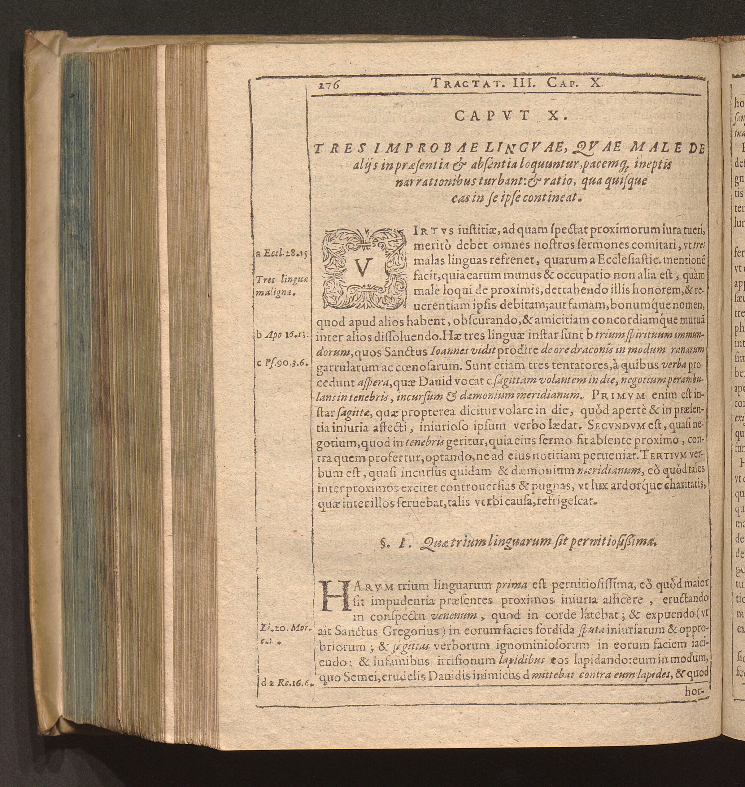 Cap. X. Tres improbæ linguæ, quæ malè de alijs in præsentia & absentia loquuntur,[...]