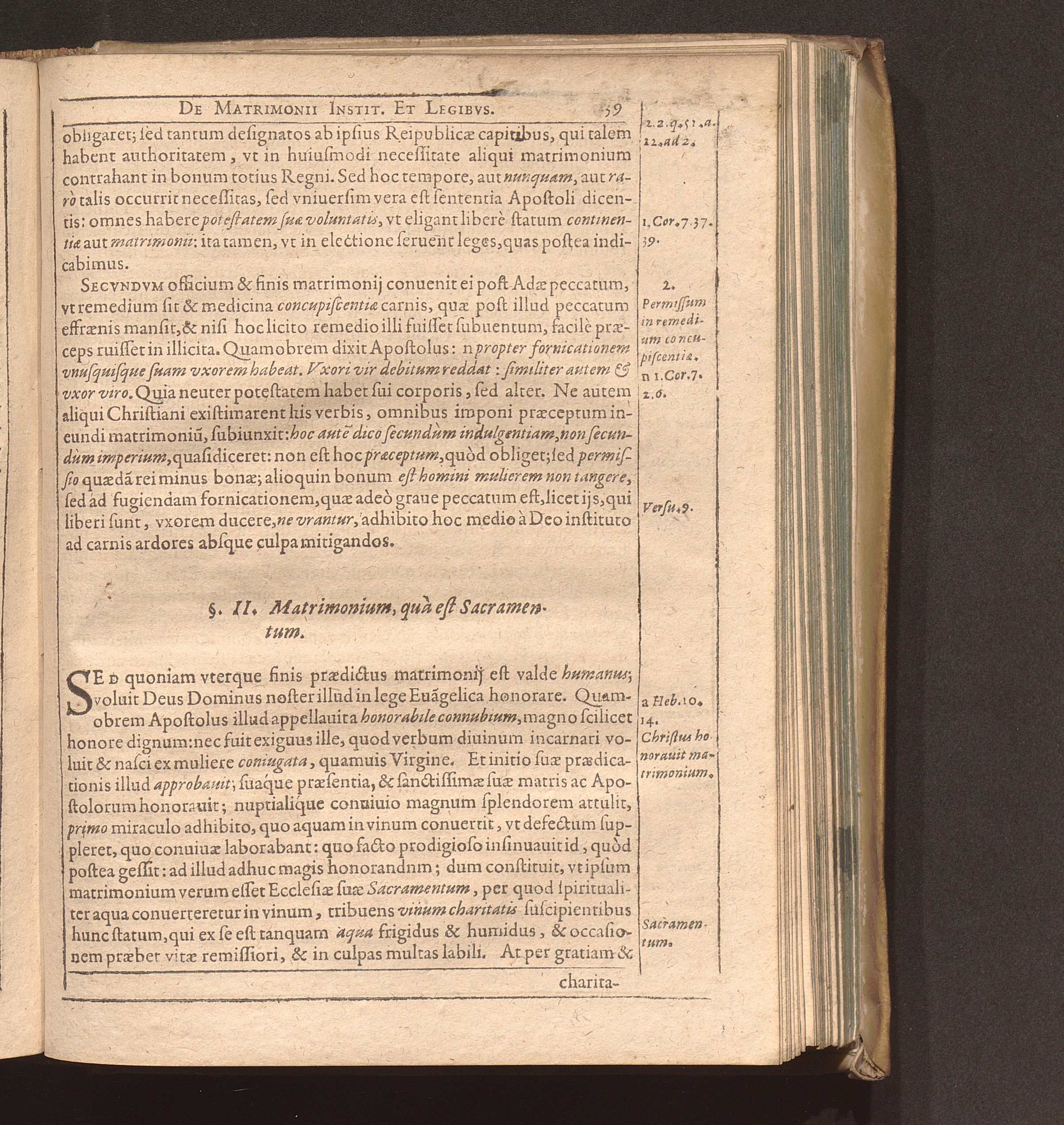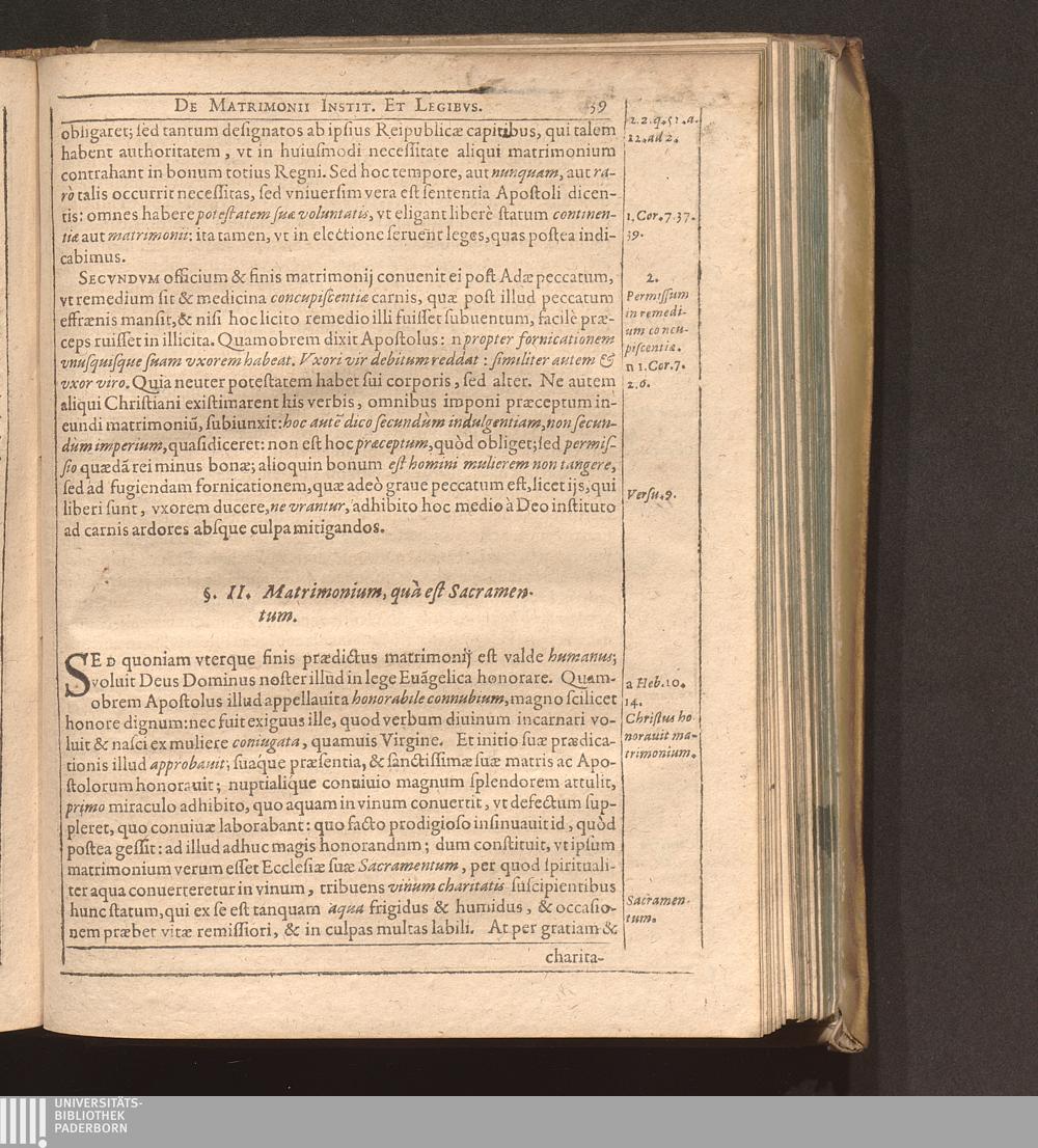 Cap. I. Matrimonij institutio & leges: quòd quà Sacramentum, dat coniugibus Christianis[...]