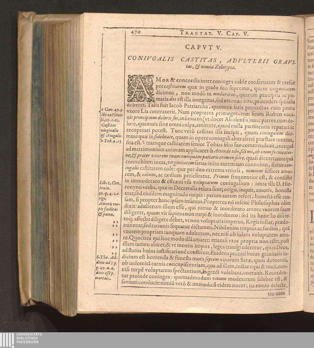 Cap. V. Coniugalis Castitas, Adulterij grauitas, & nimia zelotypia.