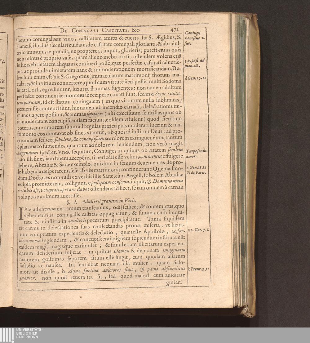 Cap. V. Coniugalis Castitas, Adulterij grauitas, & nimia zelotypia.