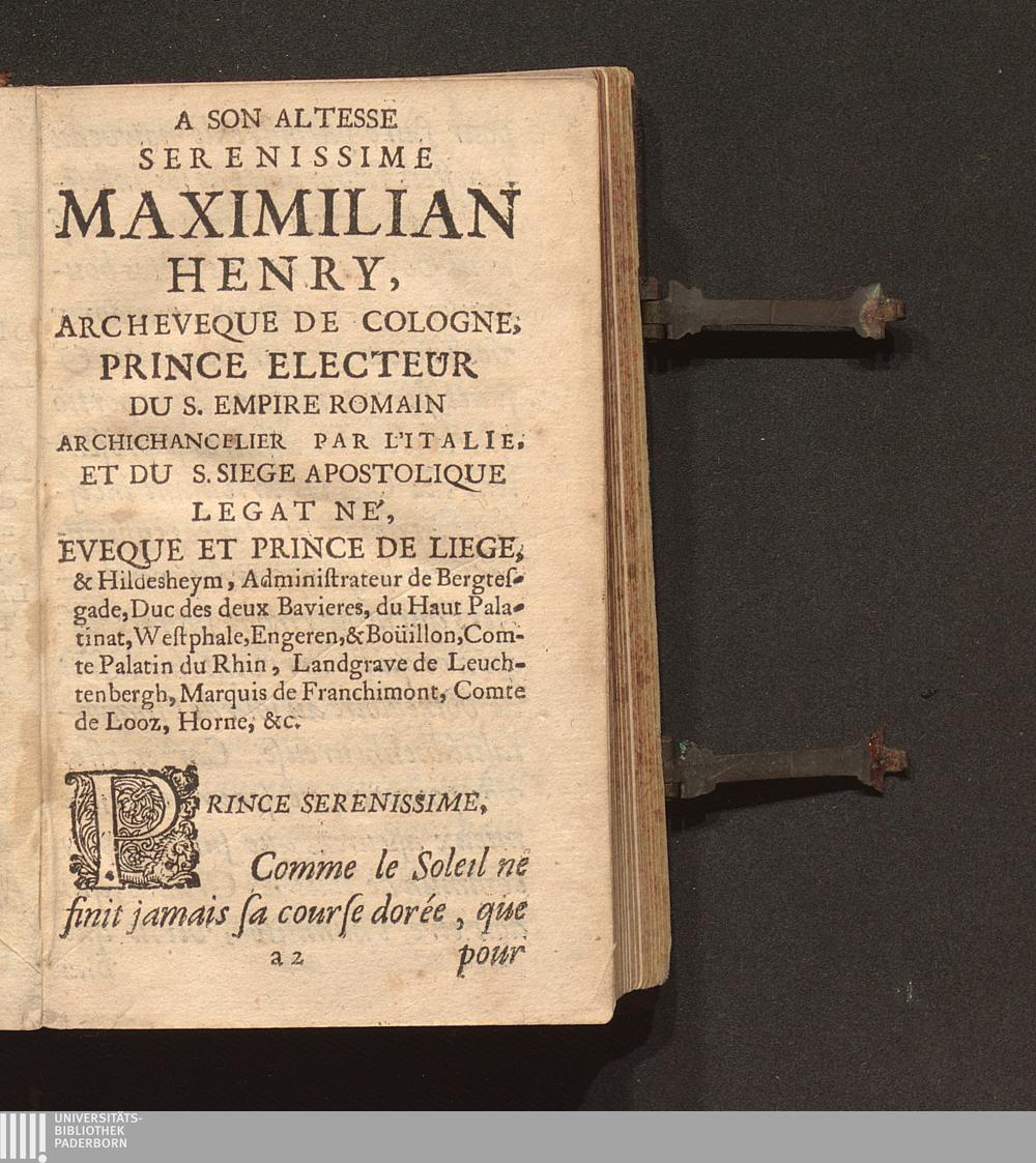 A Son Altesse Serenissime Maximilian Henry, Archeveque De Cologne, Prince Electeur[...]