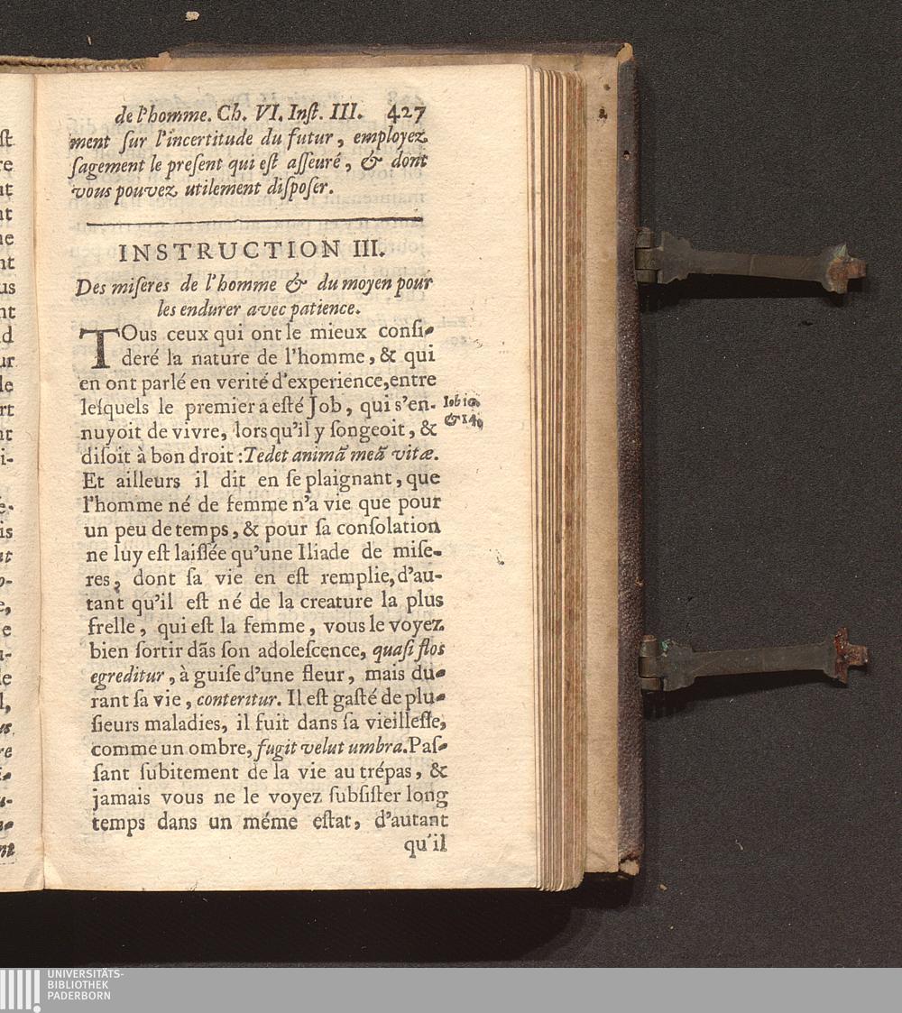 III. Des miseres de l'homme & du moyen pour les endurer avec patience.
