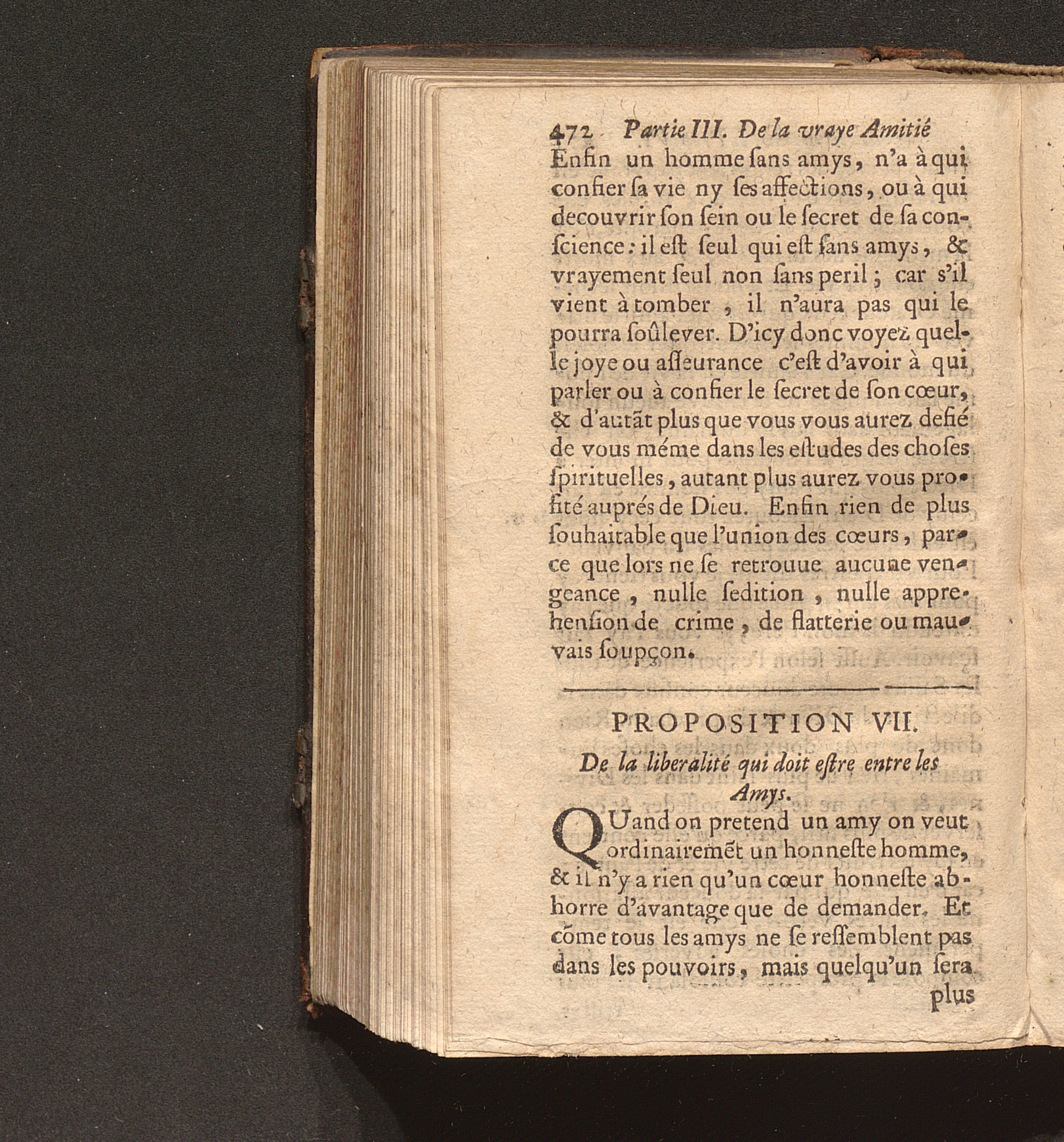 VII. De la liberalité qui doit étre entre les amis.