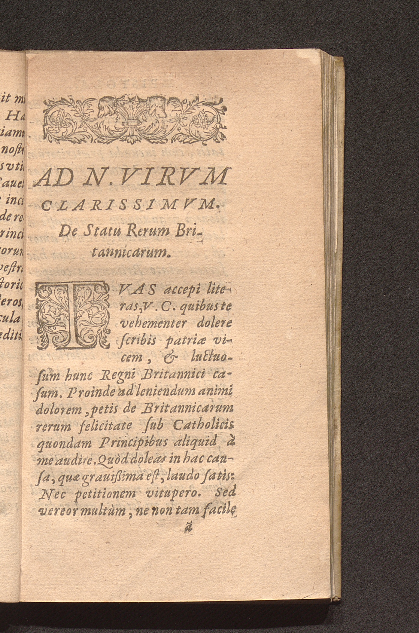 Ad N. Virvm Clarissimvm. De Statu Rerum Britannicarum.