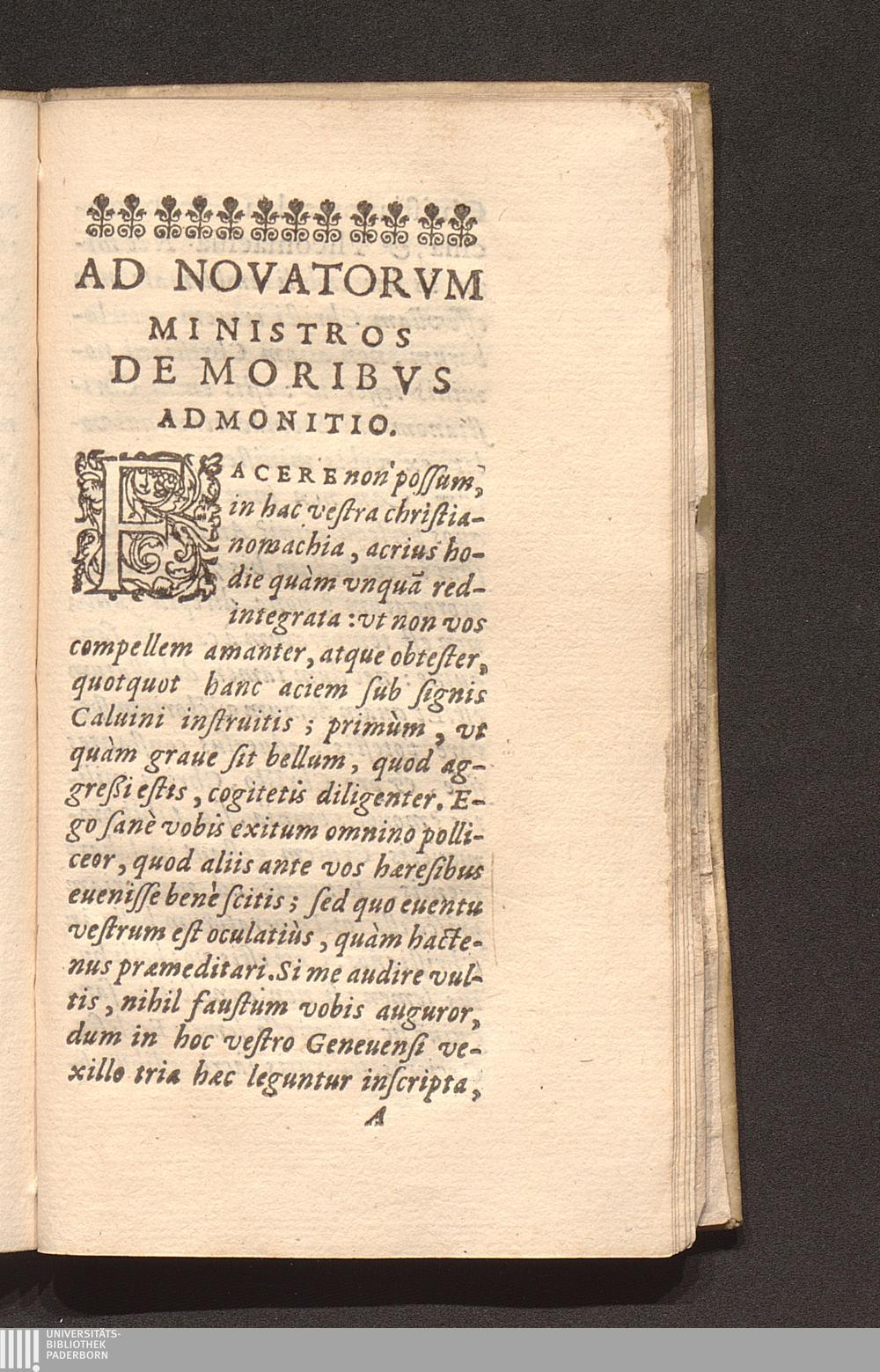 Ad Novatorvm Ministros De Moribvs Admonitio.