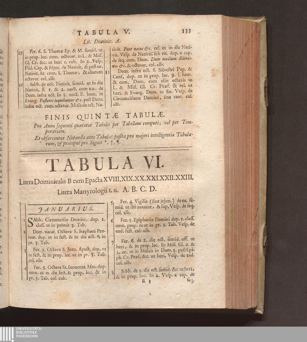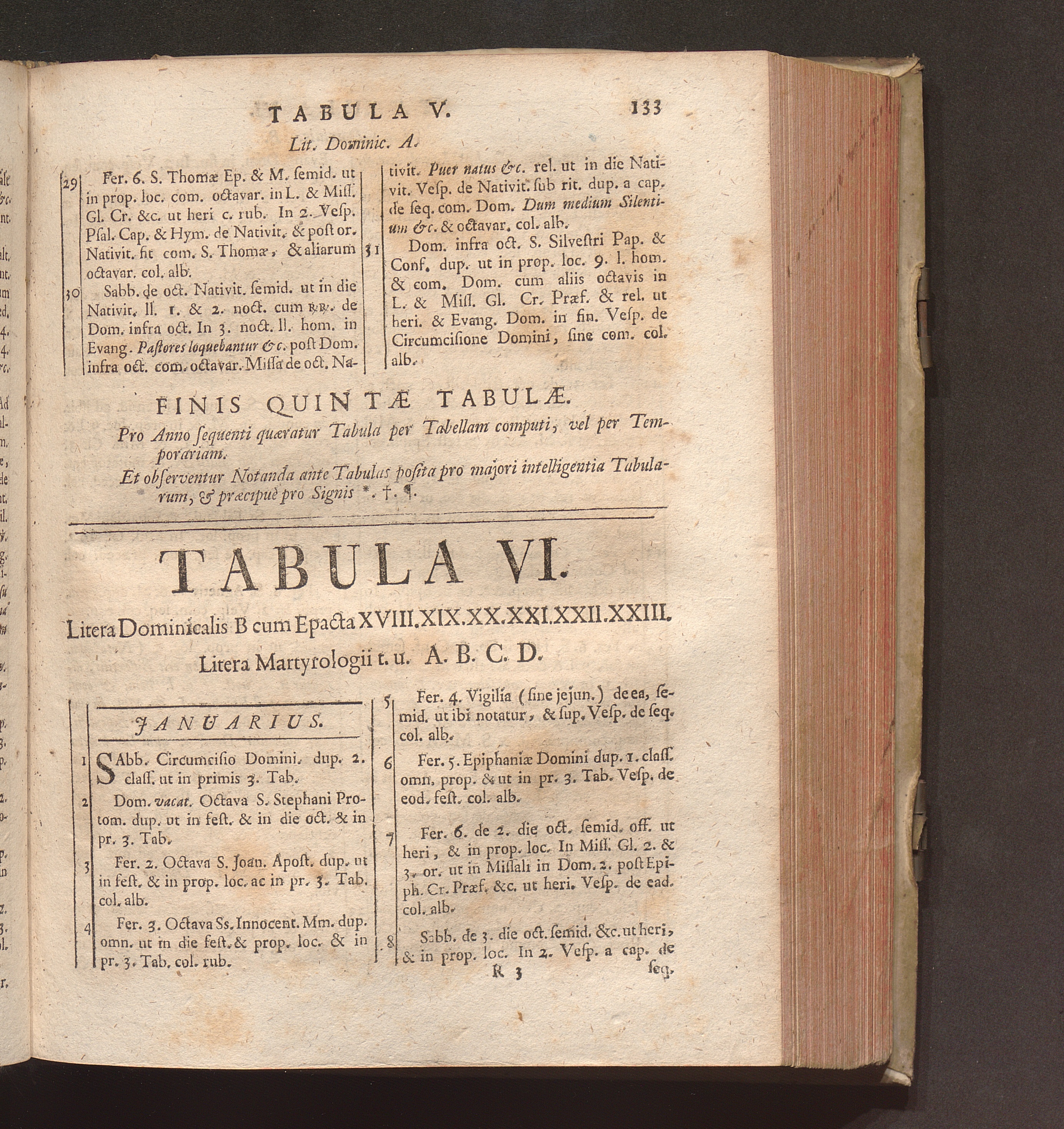 Tabula VI. Litera Dominicalis B cum Epacta XVIII. XIX. XX. XXI. XXII. XXIII. Litera[...]