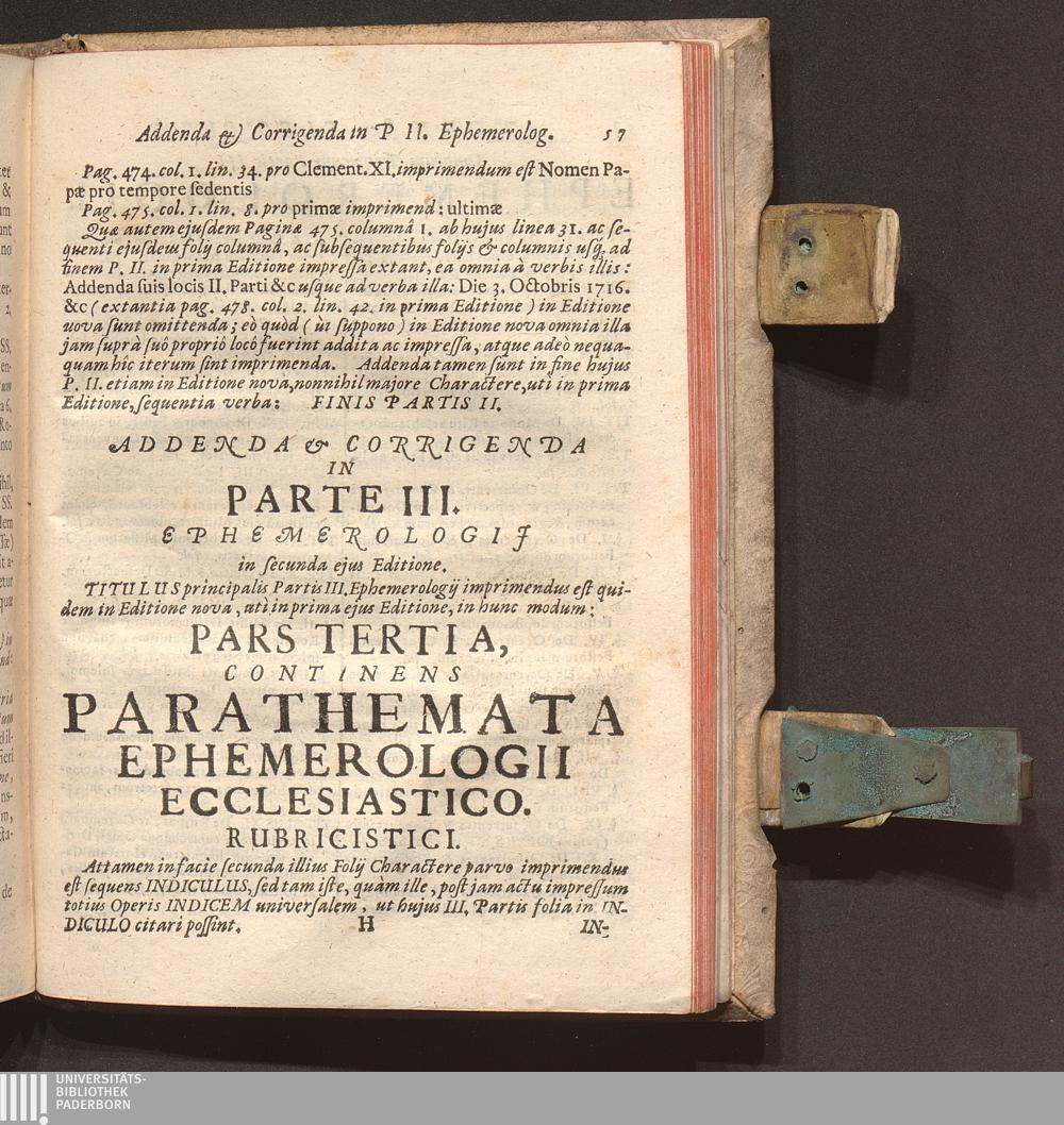 Addenda & Corrigenda In Parte III. Ephemerologij in secunda ejus Editione.
