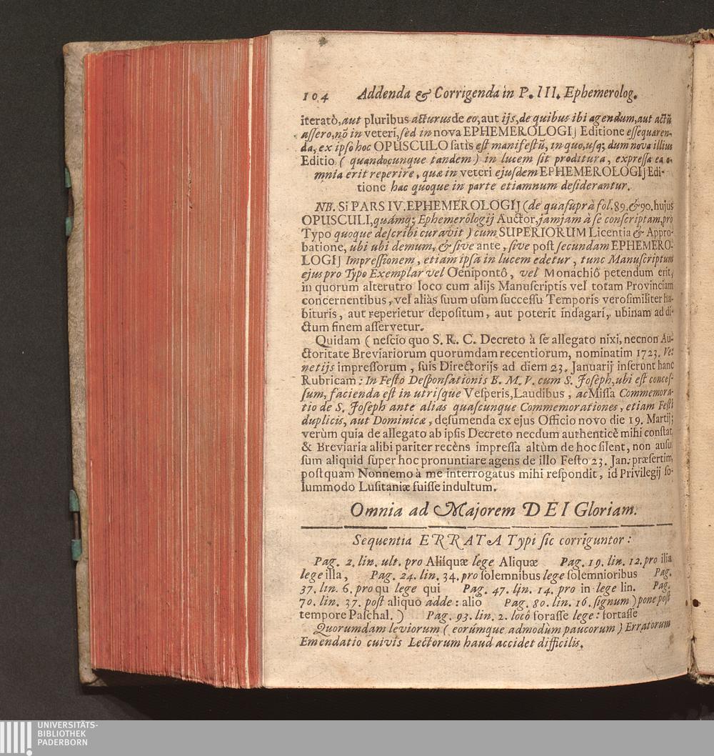 Addenda, Et respectivè Corrigenda In Editione Secunda Ephemerologii Ecclesiastico-Rubricistici P. Joannis Baptistæ Halden, è Societate Jesu, Quando illud cum Facultate Superiorum denuo in lucem edetur