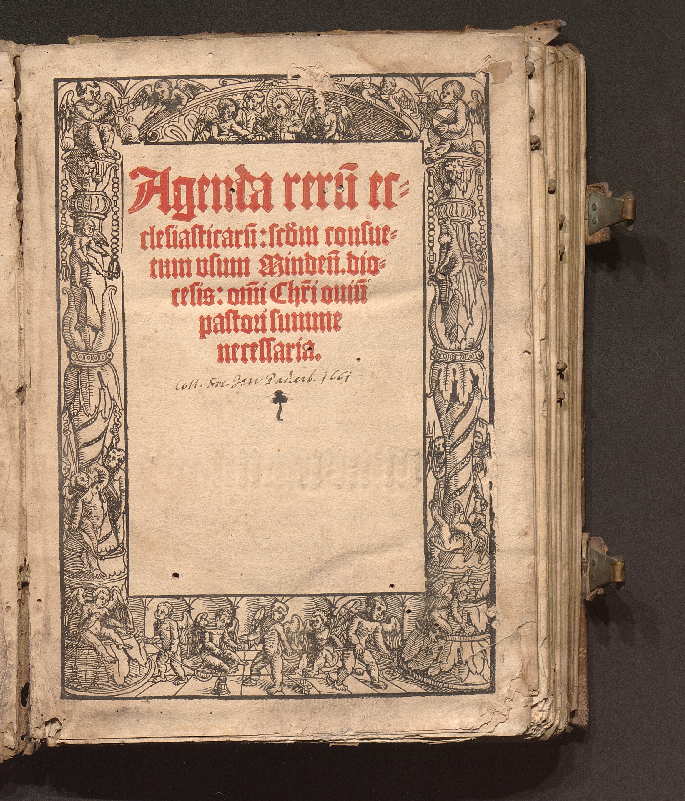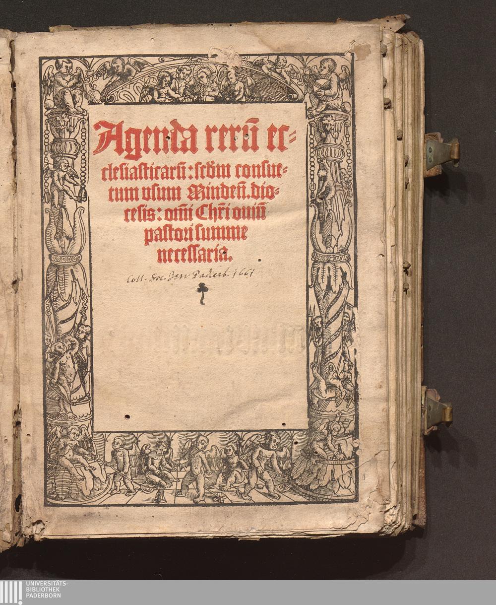 Agenda reru[m] ec-||clesiasticaru[m]: s[e]c[un]d[u]m consue-||tum vsum Minden[sis] dio-||cesis:|| : om[n]i Chr[ist]i ouiu[m]|| pastori summe|| necessaria.||