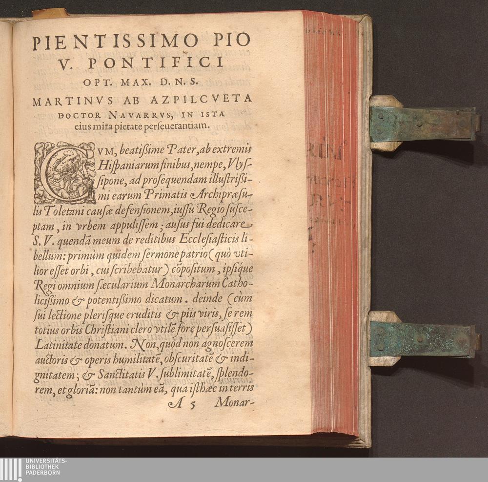 Pientissimo Pio V. Pontifici Opt. Max. D. N. S. Martinvs Ab Azpilcveta Doctor Navarrvs,[...]