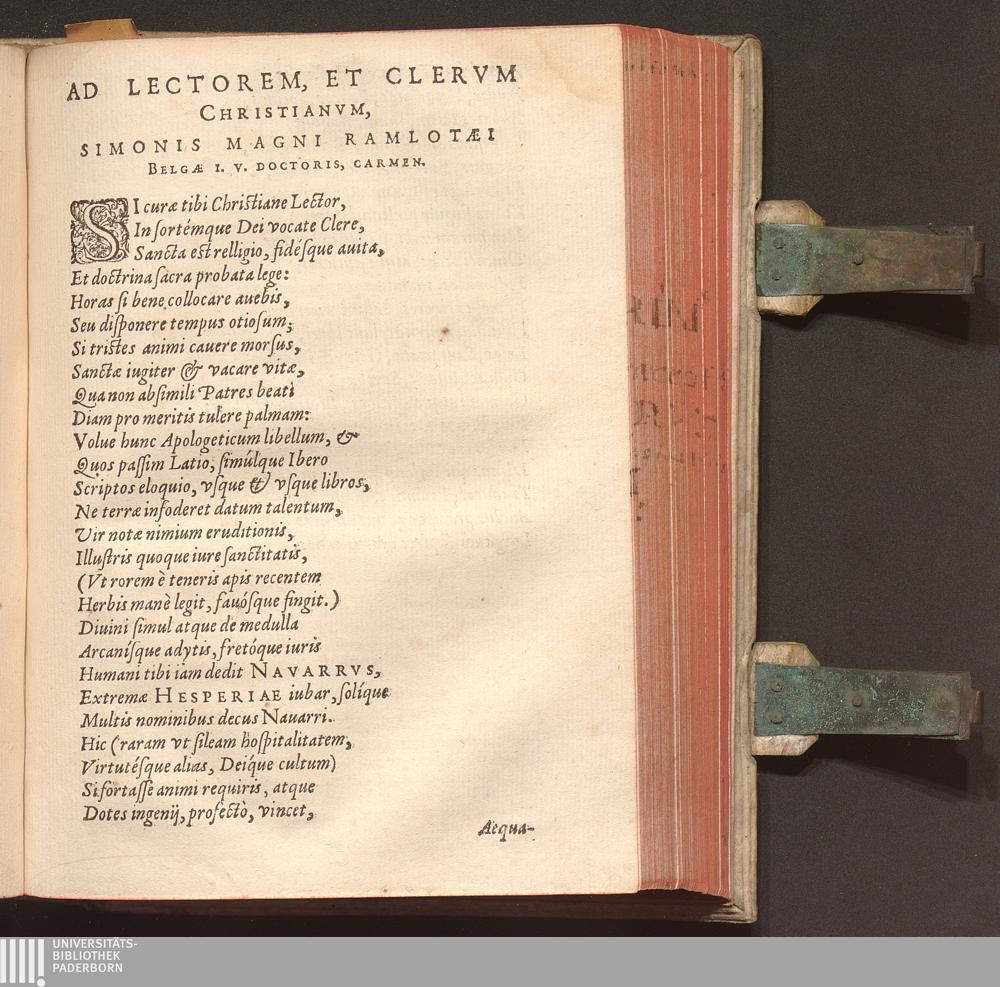 Ad Lectorem, Et Clervm Christianvm, Simonis Magni Ramlotæi Belgæ I. V. Doctoris,[...]