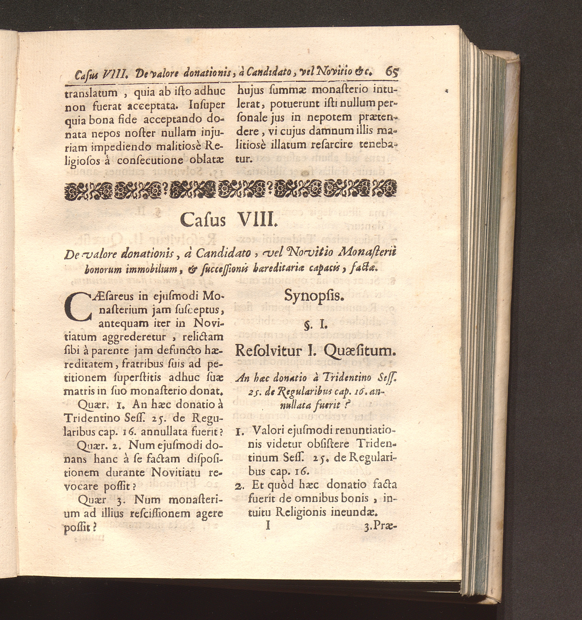Casus VIII. De valore donationis à Candidato, vel Novitio Monasterii bonorum immobilium,[...]