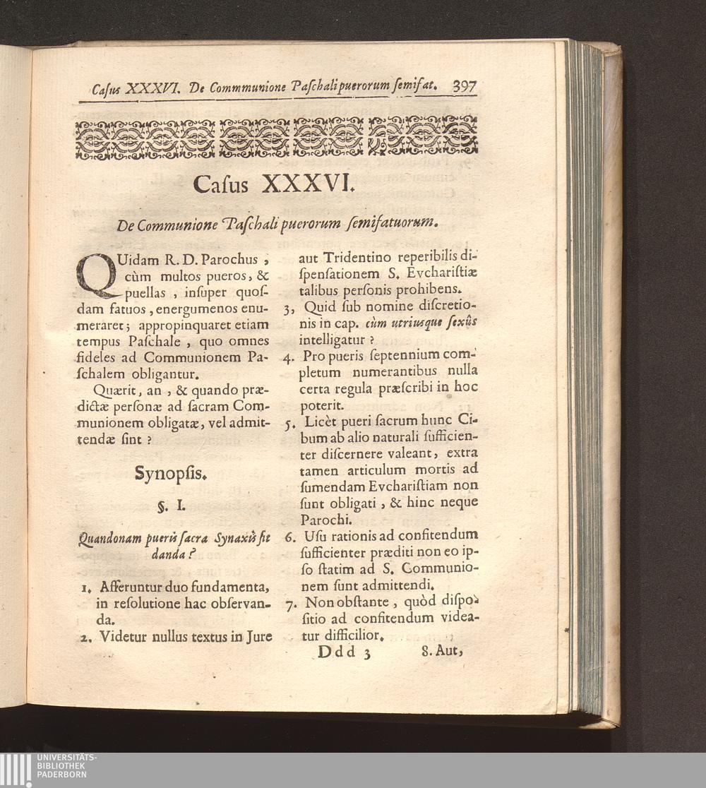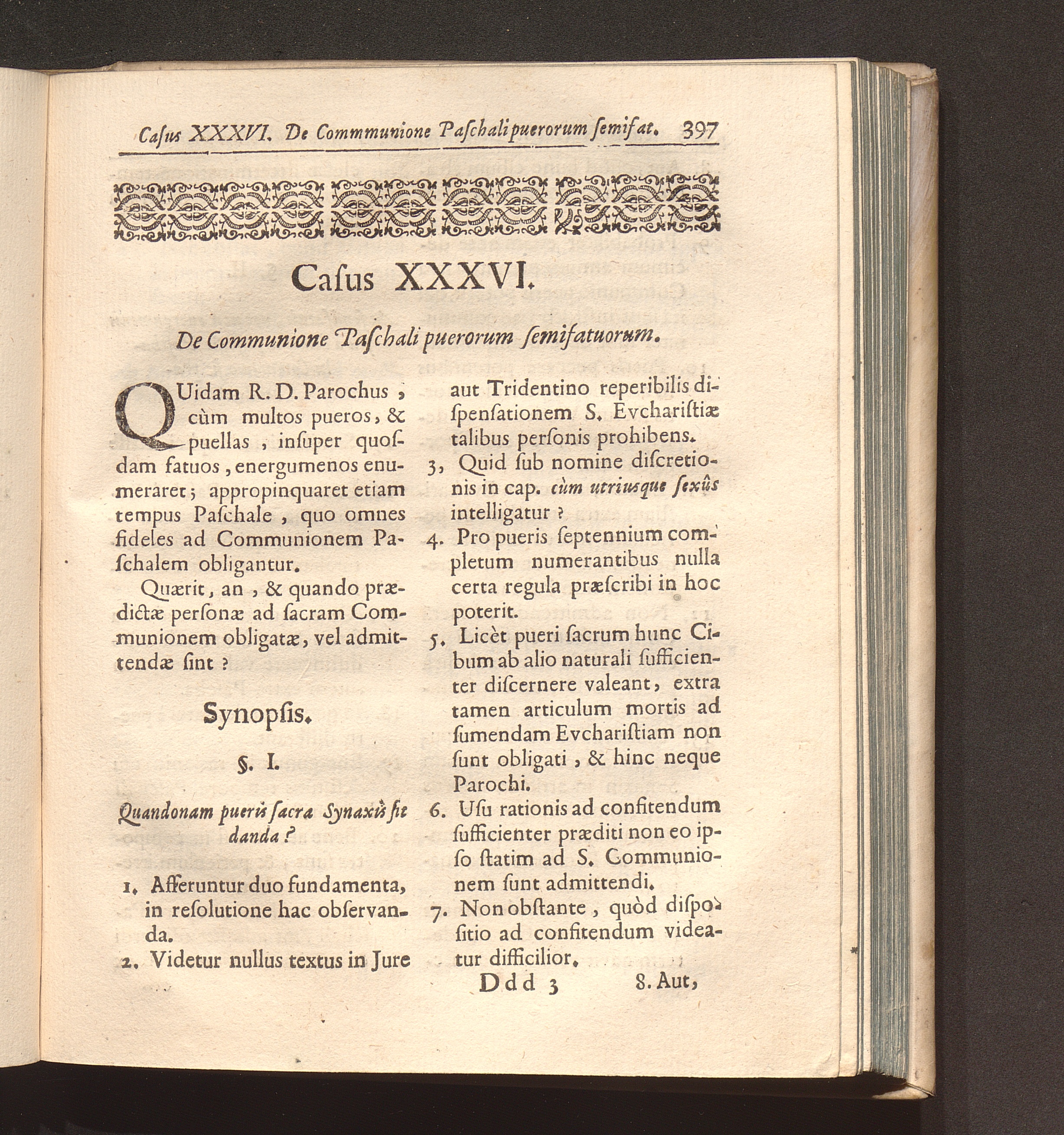 Casus XXXVI. De Communione Paschali puerorum, semifatuorum.