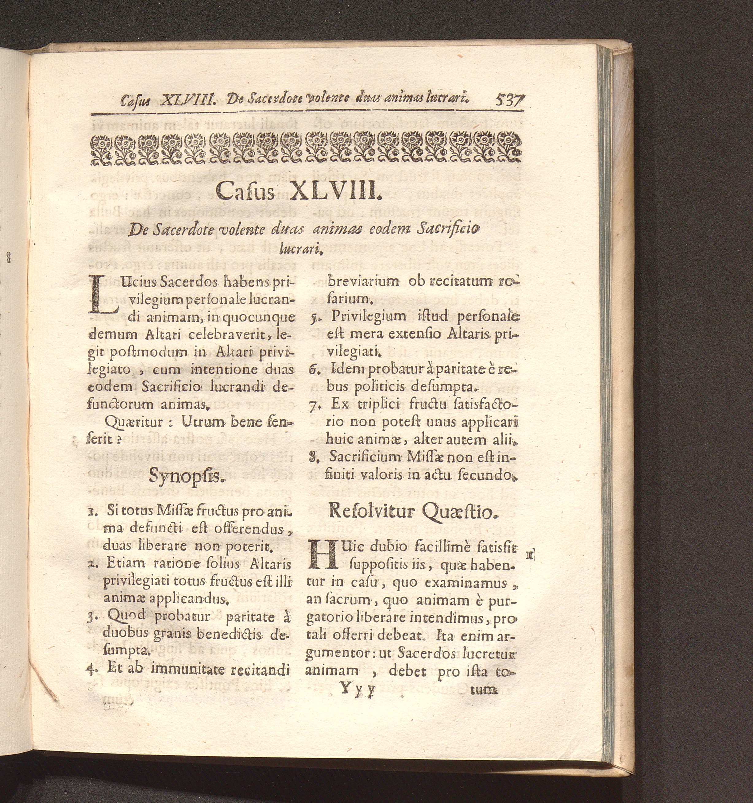 Casus XLVIII. De Sacerdote volente duas animas eodem sacrificio lucrari.