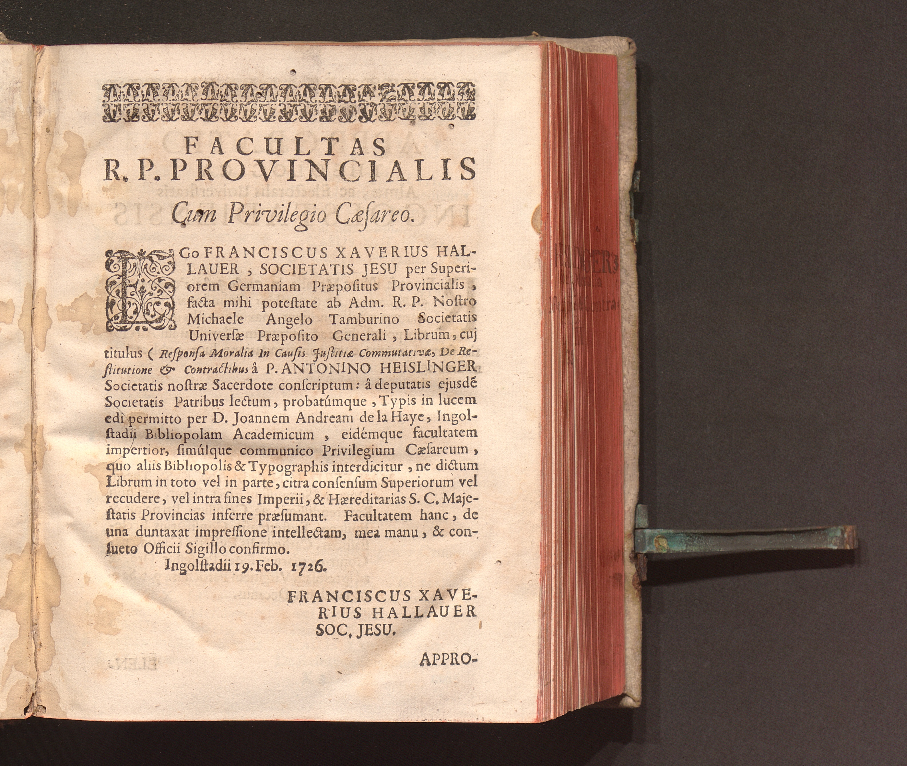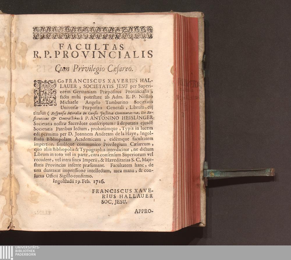Facultas R. P. Provincialis Cum Privilegio Cæsareo.