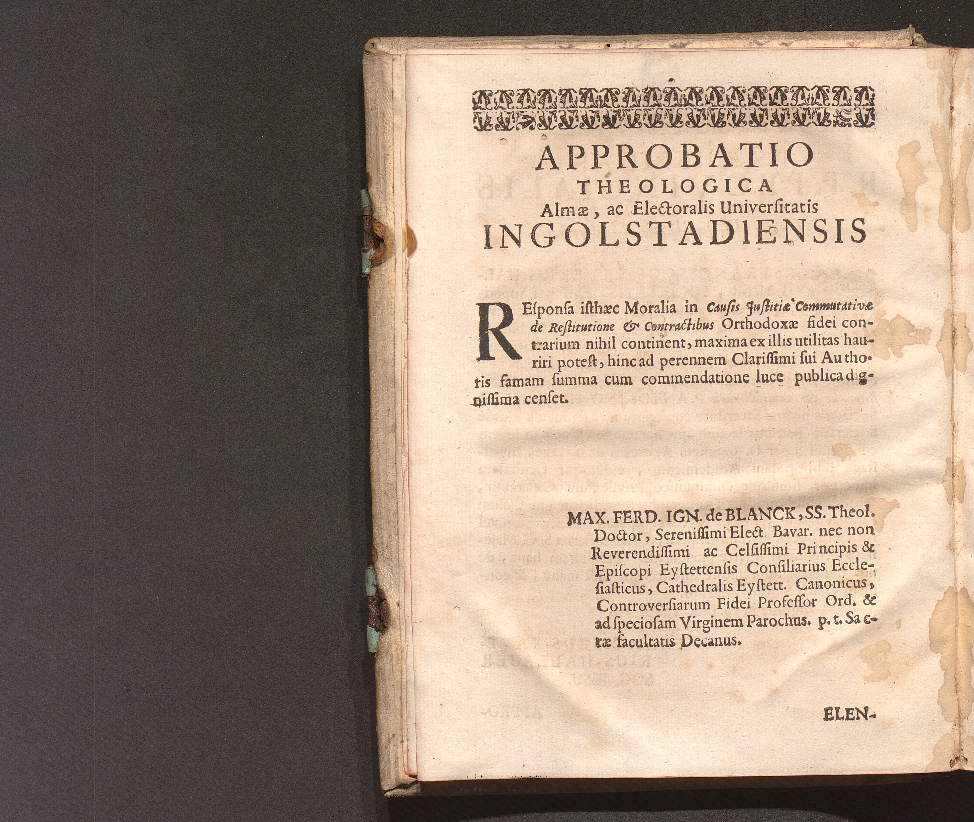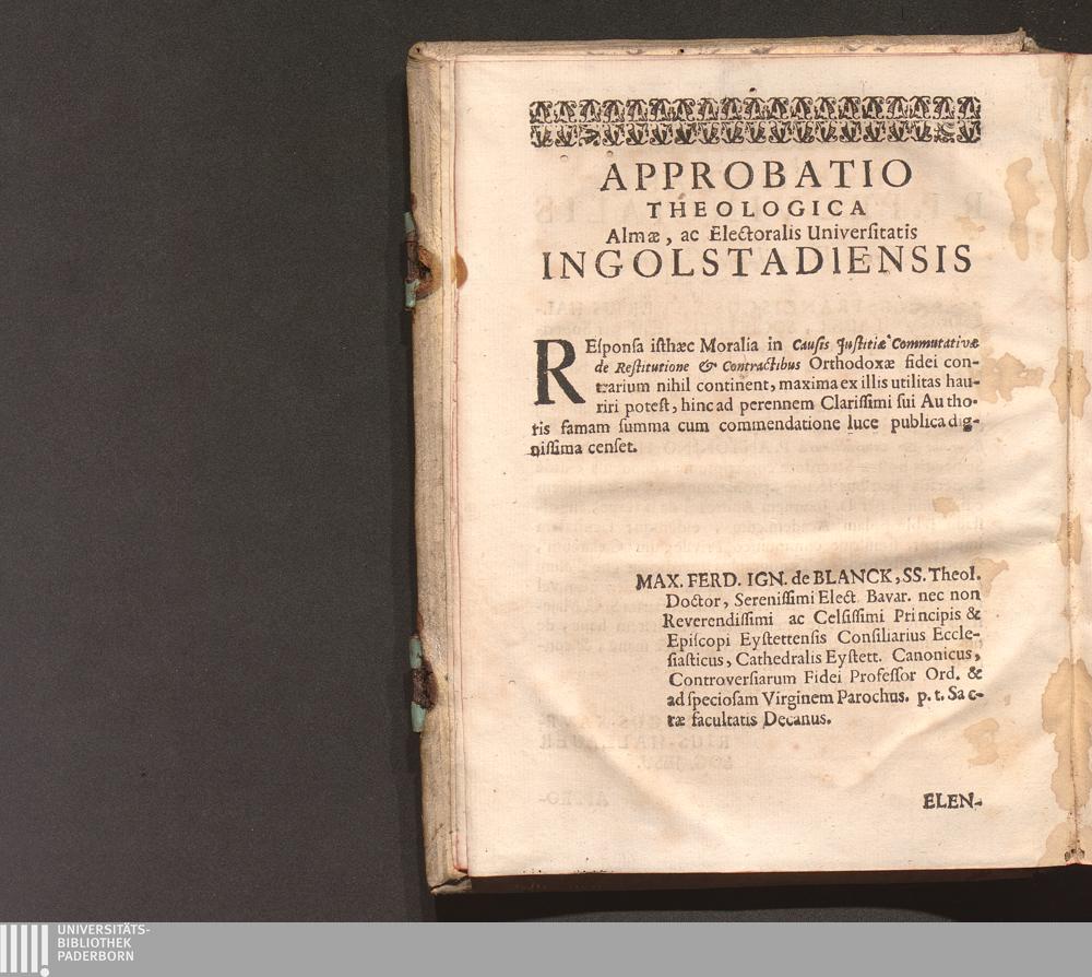 Approbatio Theologica Almæ, ac Electorialis Universitatis Ingolstadiensis
