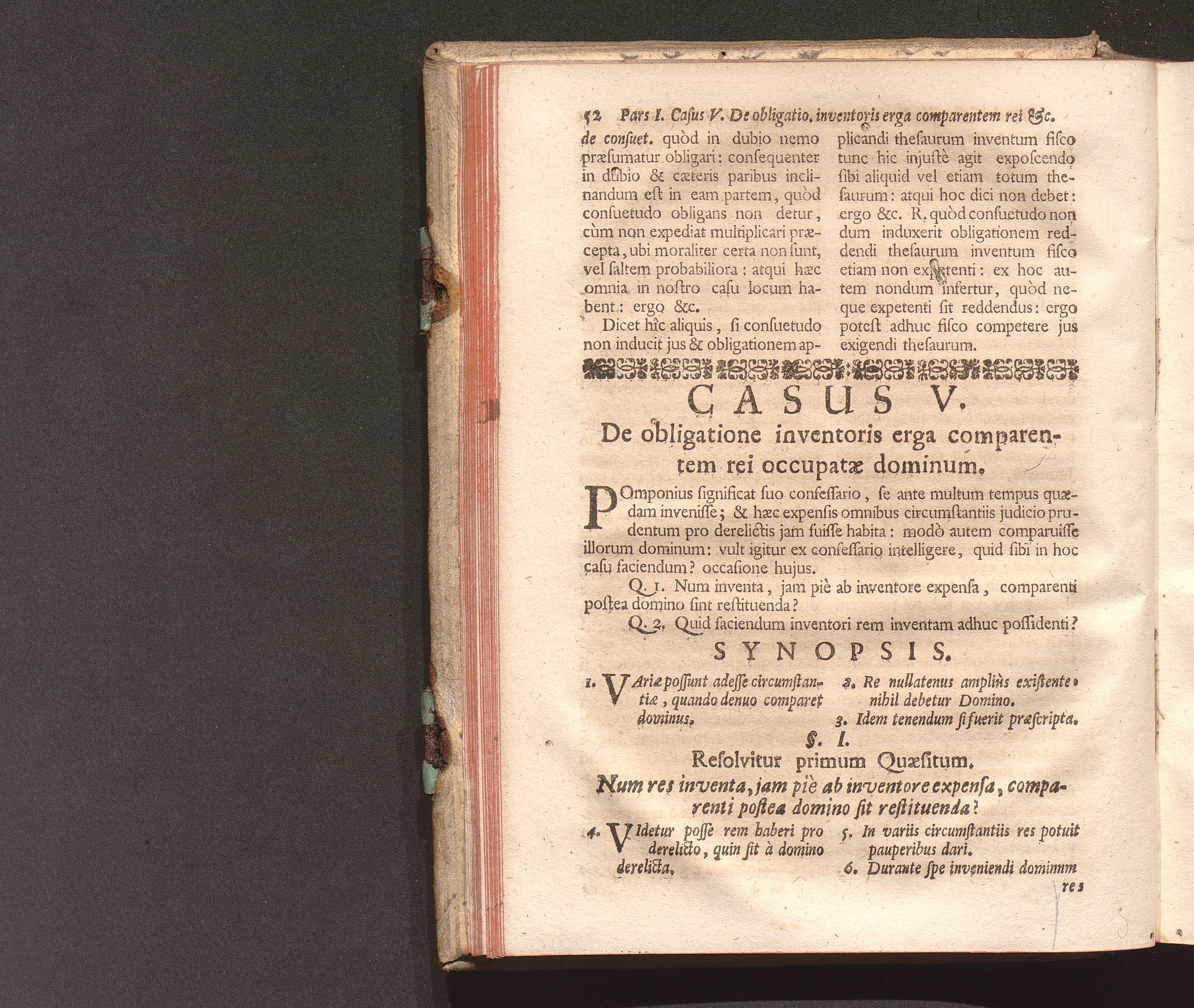 Casus V. De Obligatione Inventoris erga comparentem rei occupatæ Dominum.