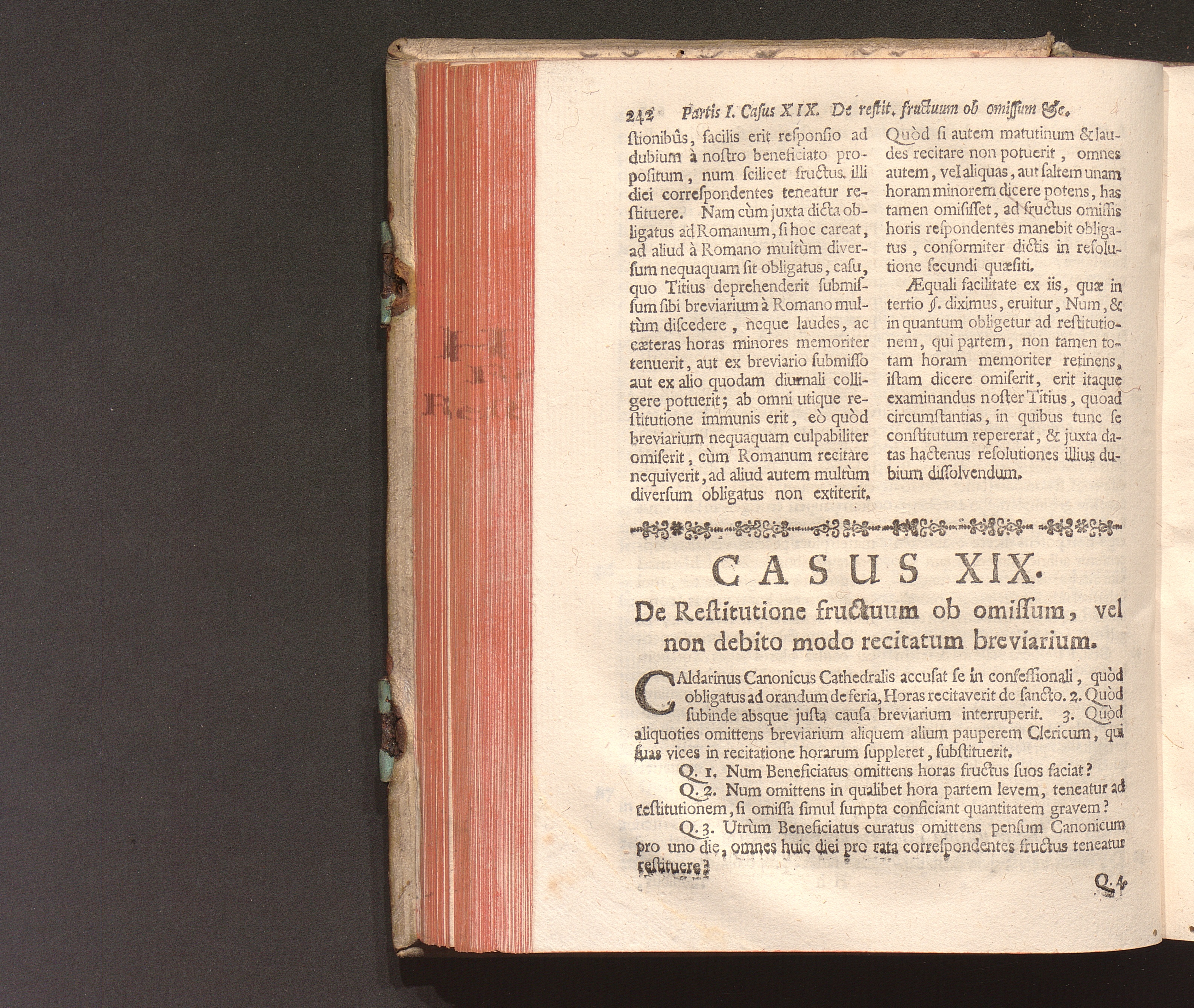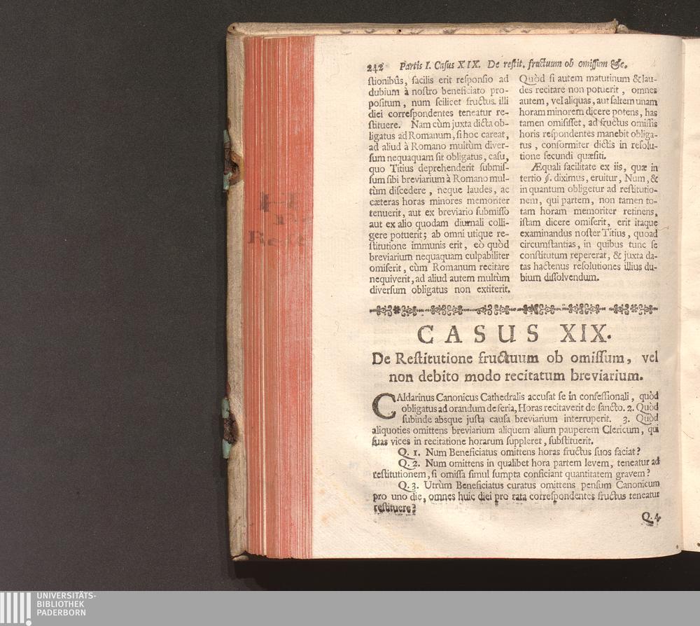 Casus XIX. De Restitutione ob omissum vel non debito modo recitatum Breviarium.