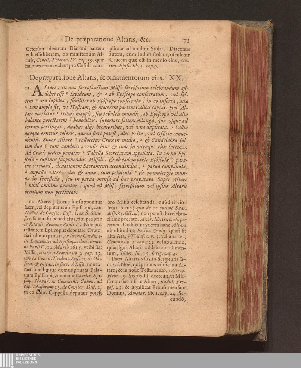 De præparatione Altaris, & ornamentorum eius. XX.