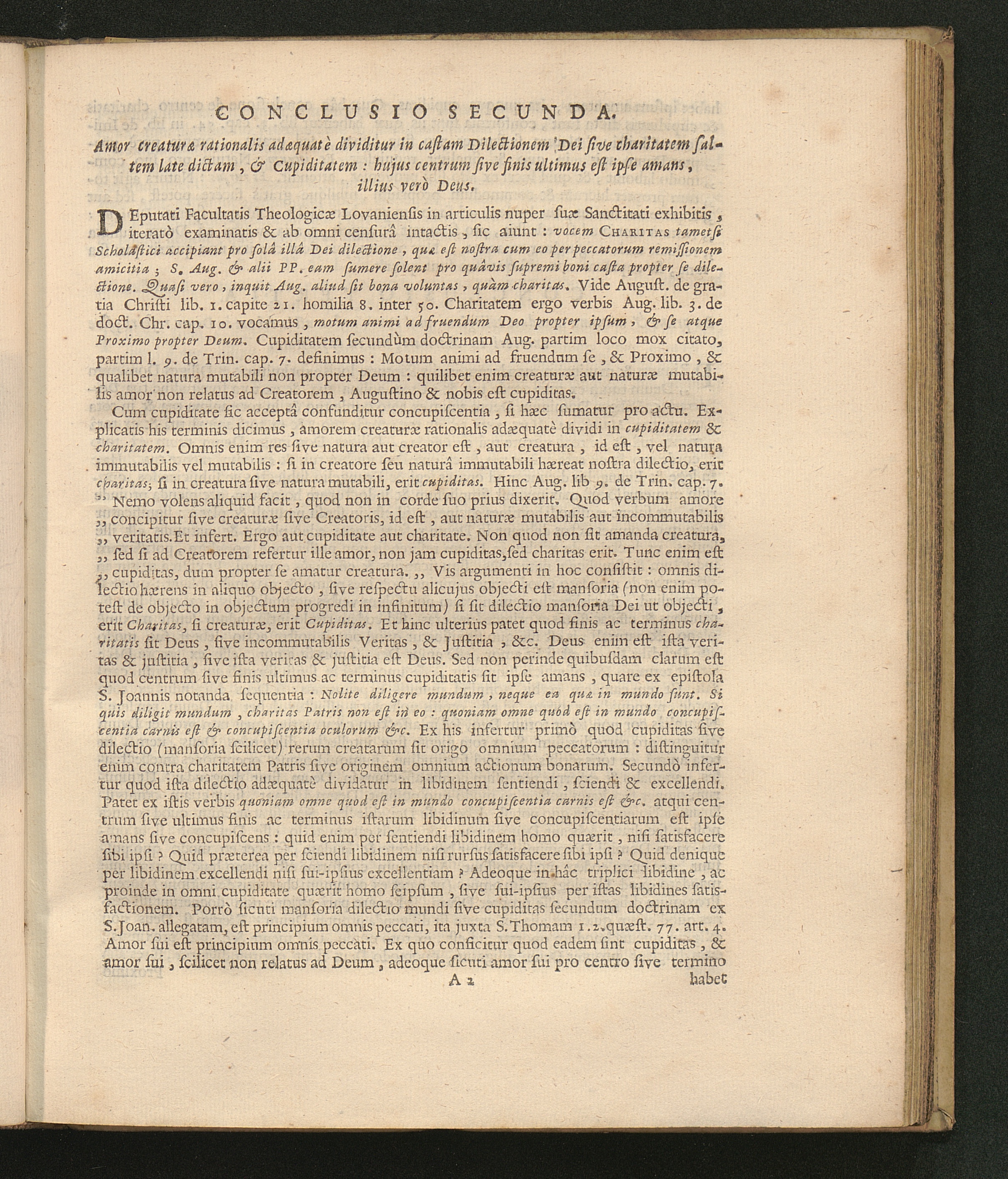 Conclusio Secunda. Amor creaturæ rationalis adæquatè dividitur in castam Dilectionem Dei sive charitatem saltem late dictam, & cupiditatem: hujus centrum sive finis ultimus est ipse amans, illius verò Deus.